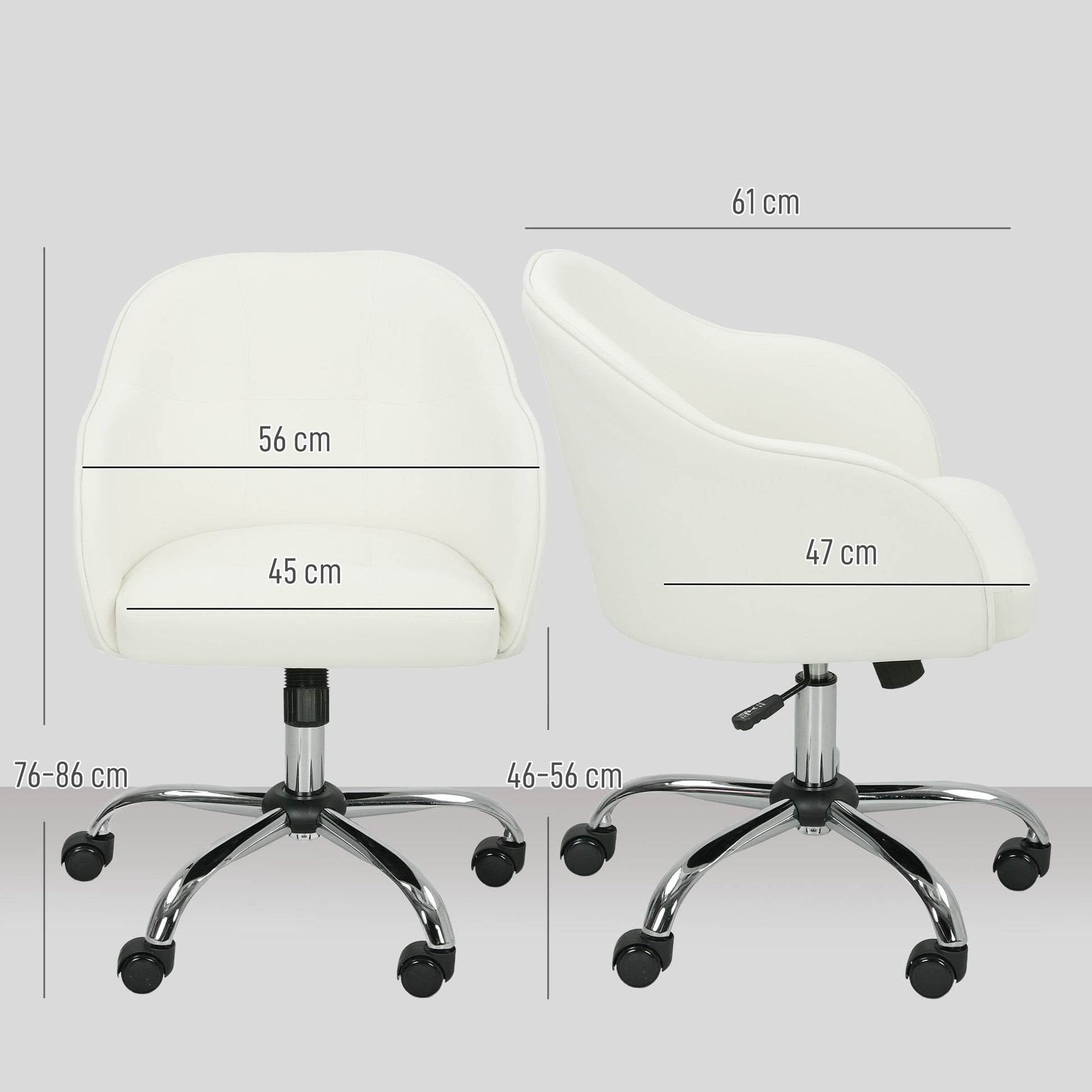 - 46-56 cm adjustable seat height, controlled by the smooth gas lift
