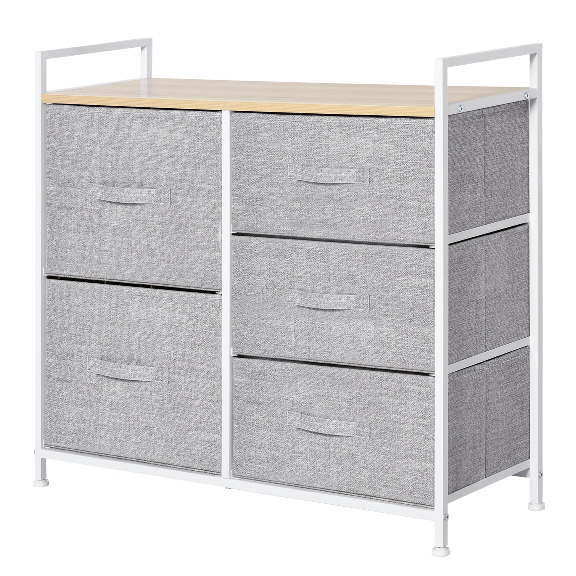 Bring easy and effortless storage into the home and beyond with this fabric drawer chest from HOMCOM. It features 2 small and three large drawers, giving you lots of room, with the flat surface top providing additional space. Made from linen, the drawers give a softened look to the appearance and feature handles to pull out easily. Connected to the metal frame with adjustable feet ensure this side cupboard keeps balanced, and it's finished with handles on the top so you can move it easily.