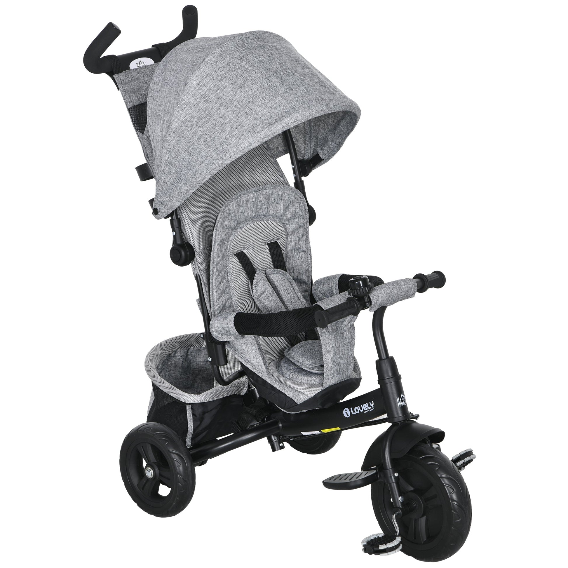 HOMCOM 6 in 1 Kids Trike with Parent Handle, Canopy, 5-point Safety Belt, Storage, Footrest, Brake, for 1-5 Years, Grey