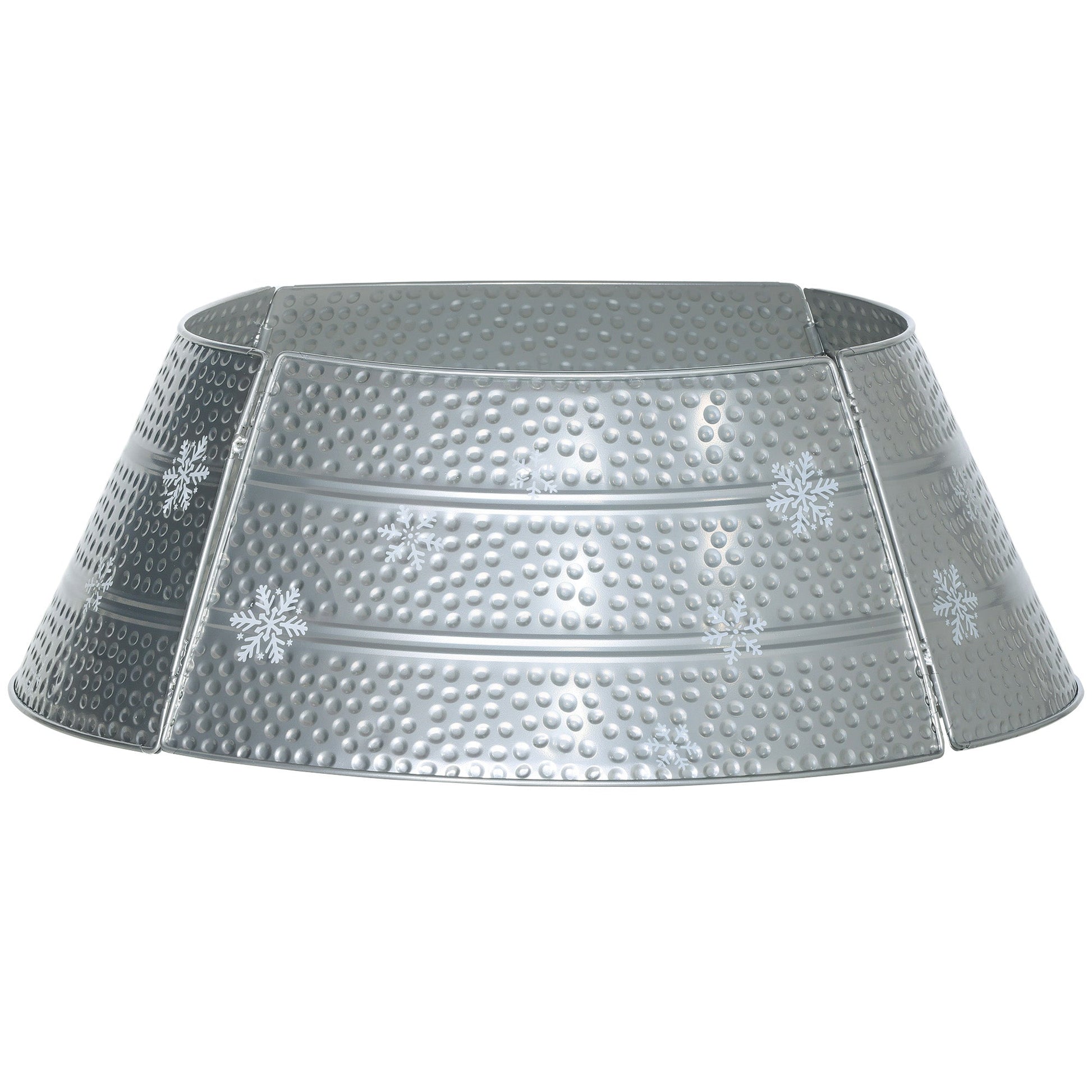لمسة نهائية جميلة ووقائية لشجرة الكريسماس الخاصة بك. طوق الشجرة المصنوع من الفولاذ هذا مغطى برقاقات ثلج مجوفة في كل مكان. المعدن المطلي بالمسحوق يجعل هذه القطعة قوية لاستخدامها مرة أخرى. كما يعني المعدن أنها ستبقى في شكلها - لا حاجة لإعادة ترتيب القماش مثل الياقات التقليدية! كما أنه سهل التركيب للغاية: ما عليك سوى تركيب القطع الأربع معًا وربطها بإحكام.