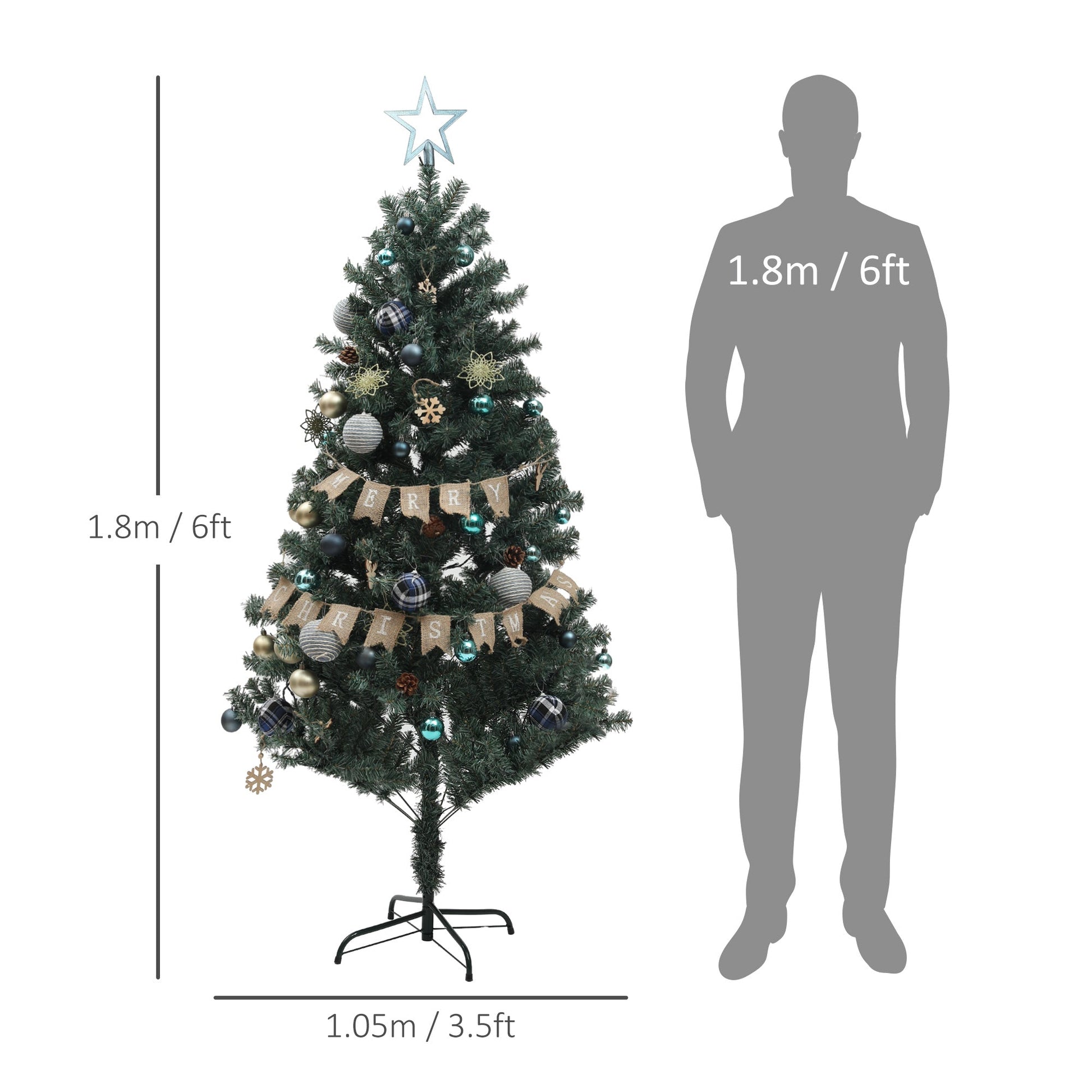 HOMCOM 6ft Pre-Lit Xmas Tree with Decorations, Green, Blue and Warm White