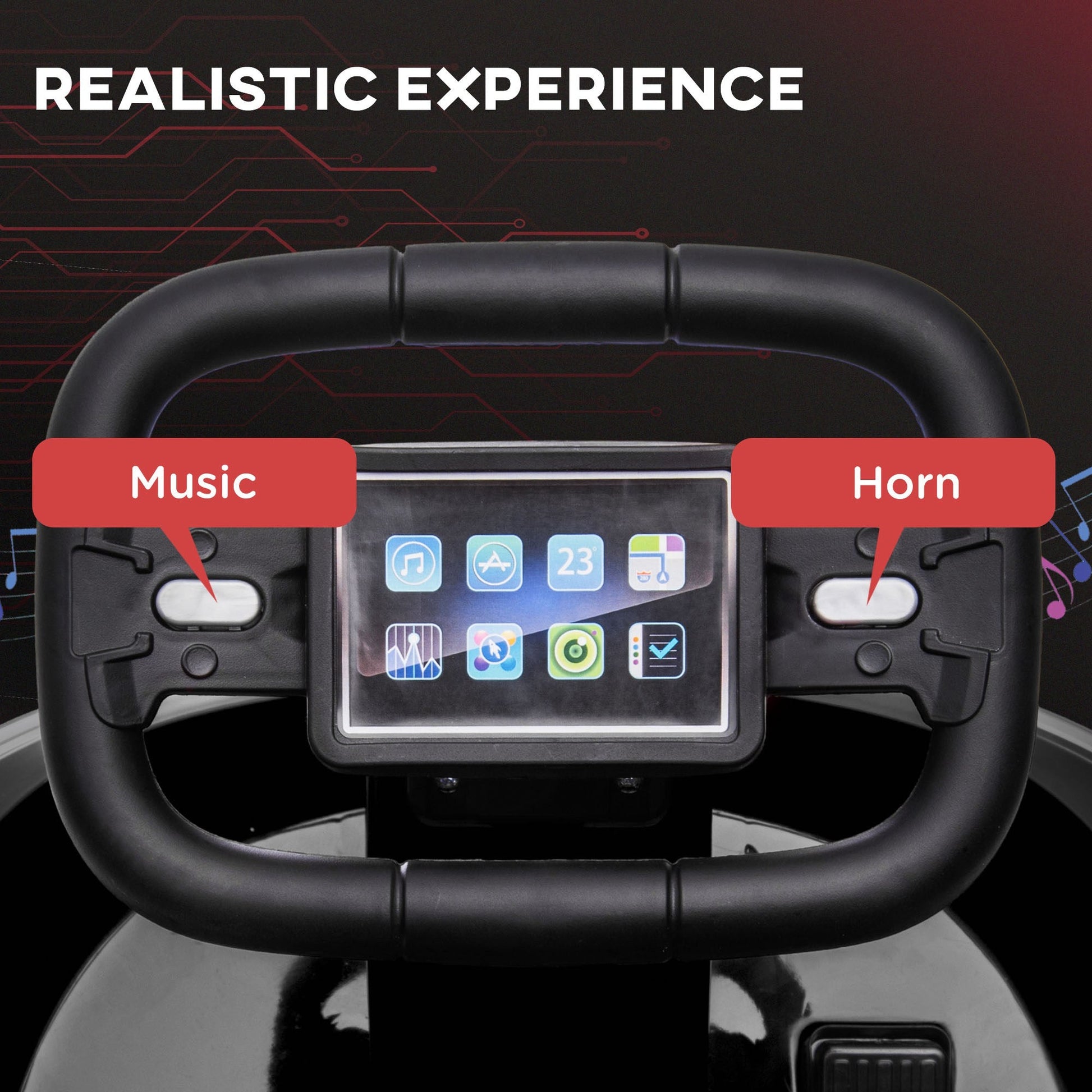 سيارة كهربائية للأطفال من هومكوم 6 فولت، سيارة سبين والتز 6 فولت، مع موسيقى وبوق وأضواء - لون أسود