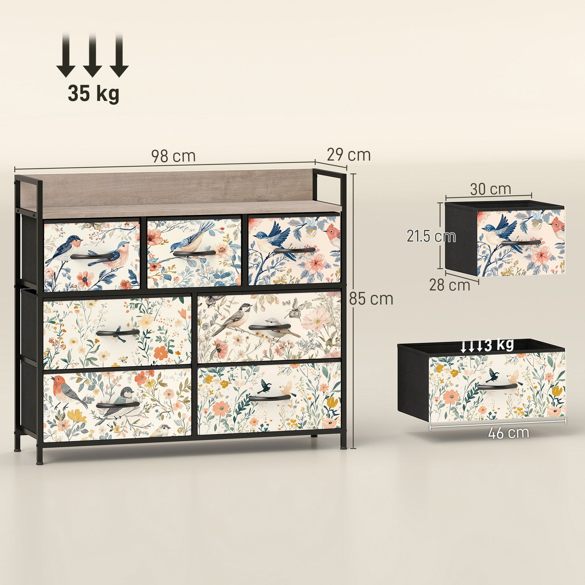 Transform your space with the HOMCOM chest of drawers, where style meets functionality! Adorned with exquisite patterns on each drawer panel, this bedroom drawers add a touch of elegance to any room. With seven fabric drawers that are both removable and foldable, organising has never been easier. Great for bedrooms, living rooms, or home offices to keep your essentials tidy.