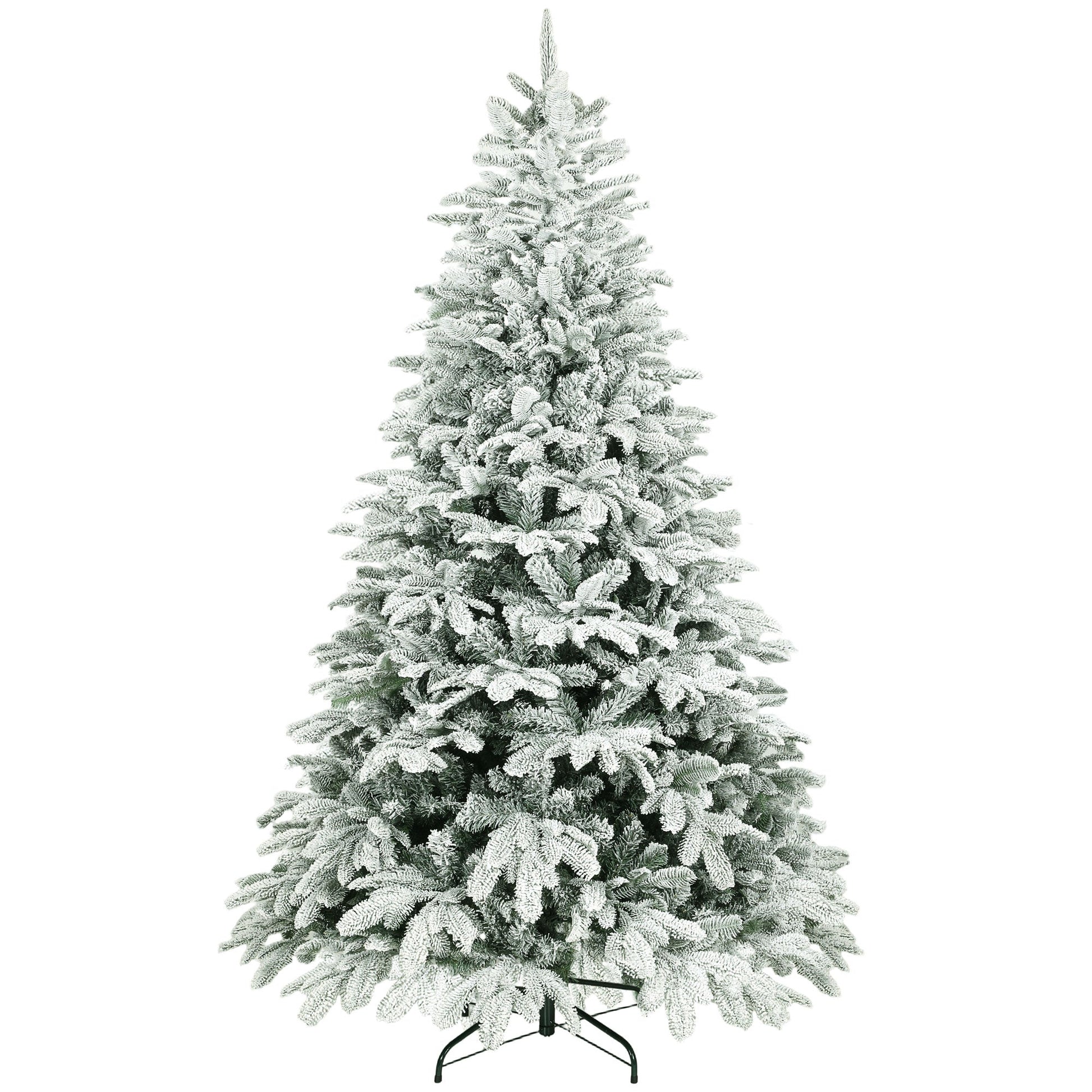 HOMCOM 7 ft Artificial Flocked Christmas Tree with 1867 Branches, Hinged Xmas Tree with Foldable Metal Stand, Easy Assembly for Home Office Decor