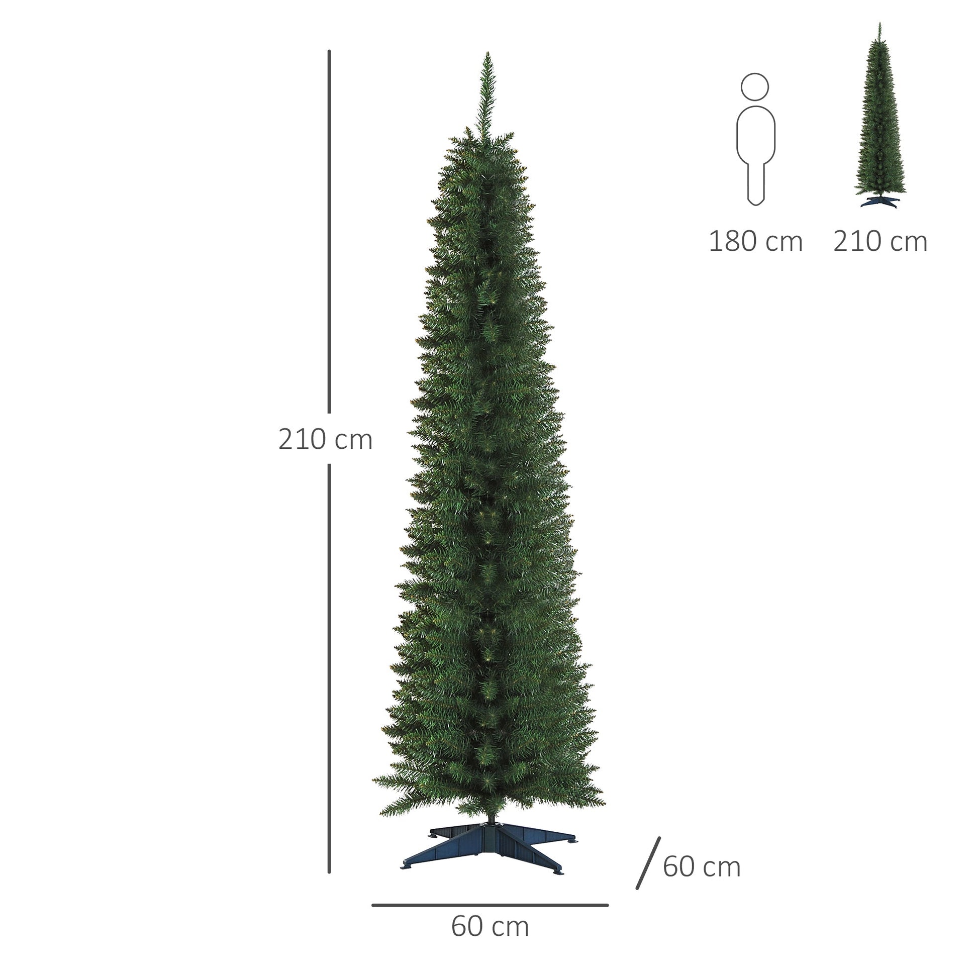 HOMCOM 7ft Unlit Artificial Christmas Tree, Pencil Slim Xmas Tree with Solid Stand and Realistic Branches, Green