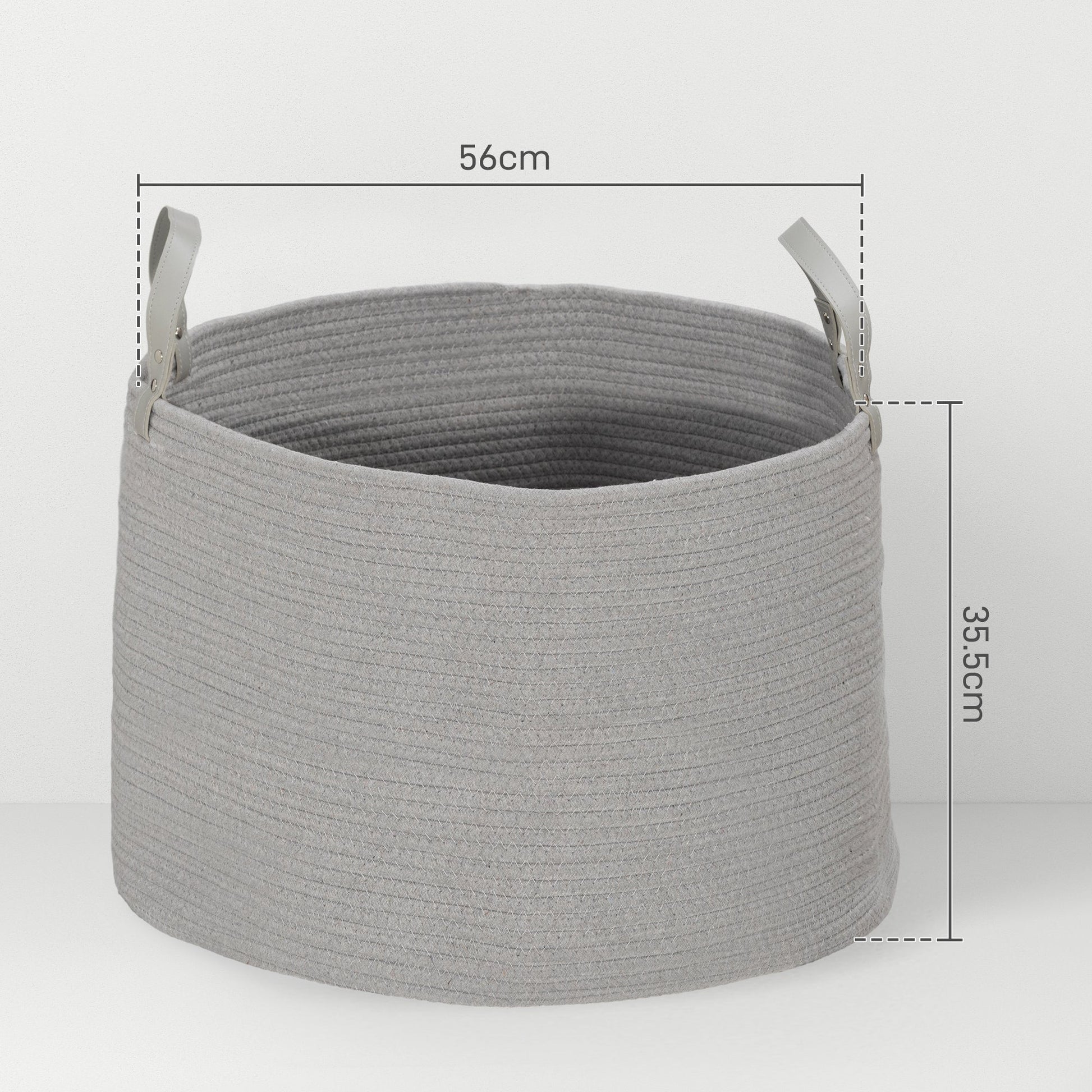 HOMCOM 88L Cotton Rope Laundry Basket, with Handles - Grey