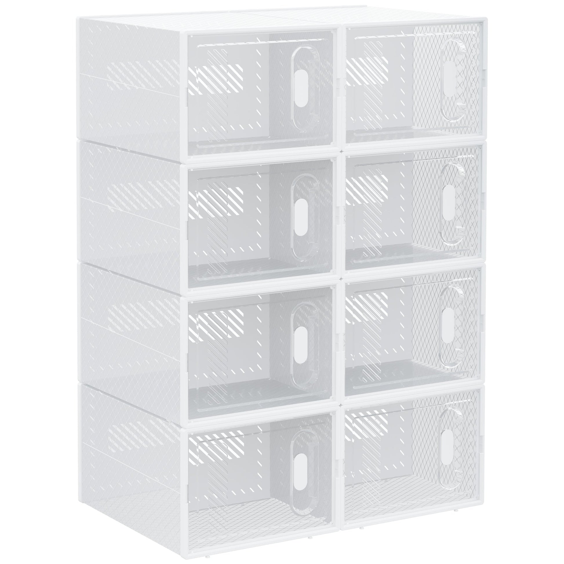 HOMCOM 8PCS Clear Shoe Box, Plastic Stackable Shoe Storage Box for UK/EU Size up to 8.5/43 with Magnetic Door for Women/Men, 25 x 35 x 19cm