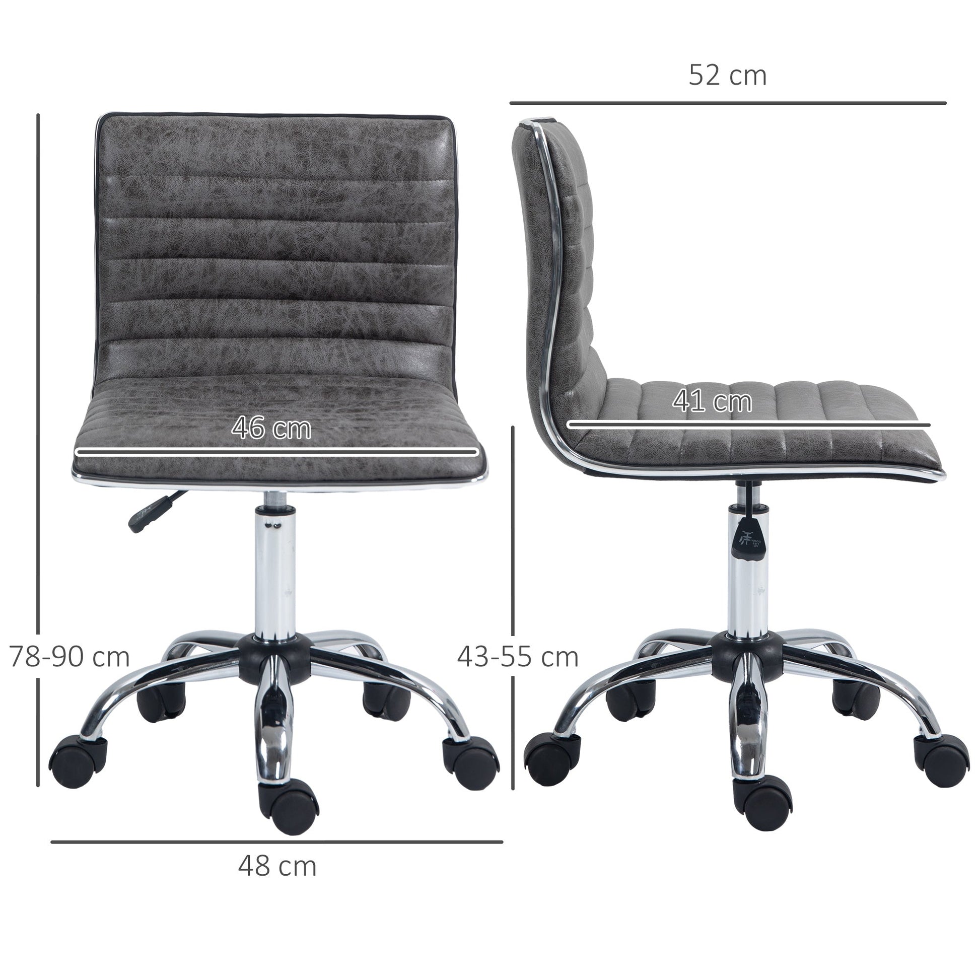 كرسي مكتب دوار قابل للتعديل من HOMCOM مع مسند ظهر متوسط بدون أذرع من قماش الألياف الدقيقة وقاعدة من الكروم - رمادي