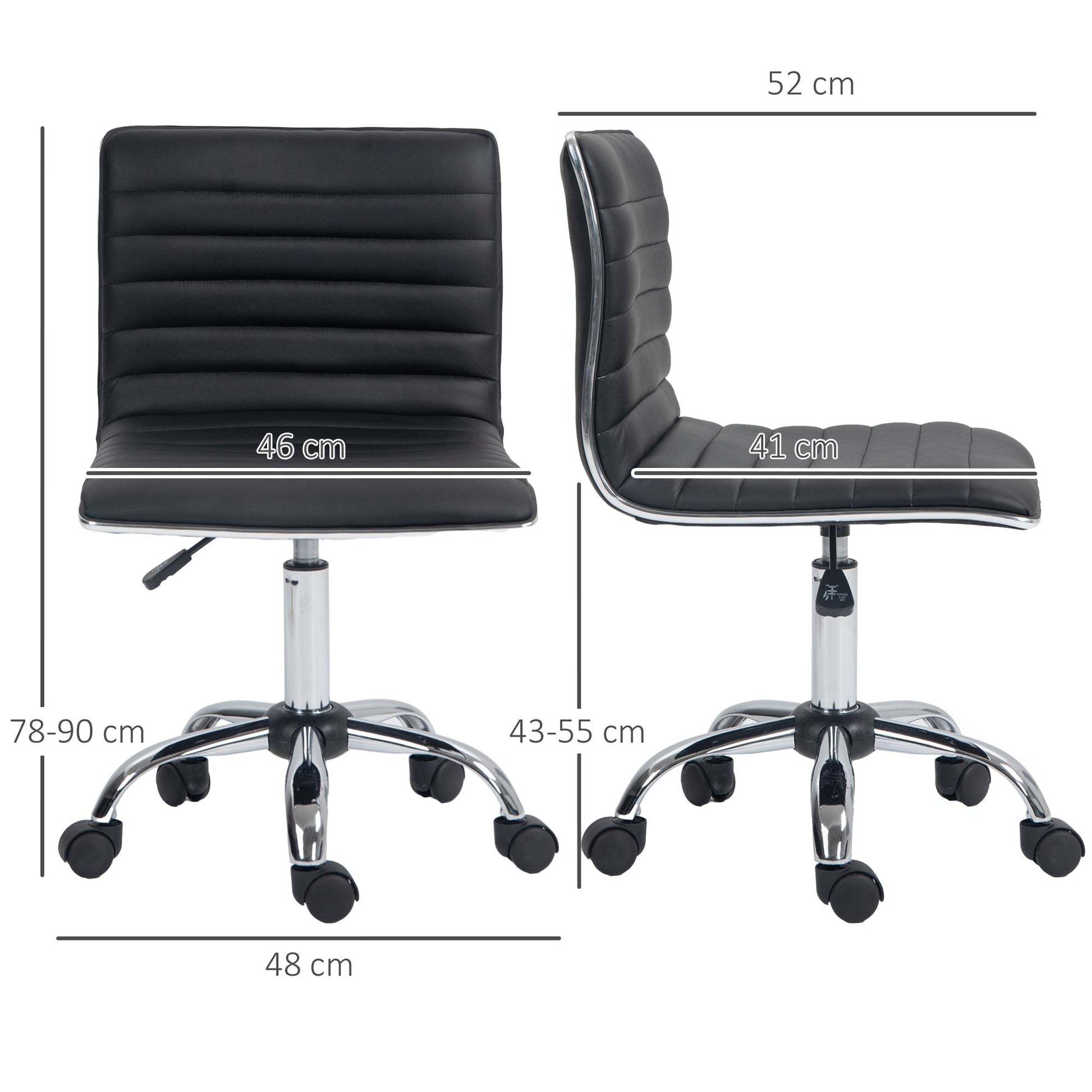 HOMCOM Armless Task Desk Chair, Swivel Office Chair with Faux Leather, Adjustable Seat Height, Chrome Base, Wheels for Home, Black