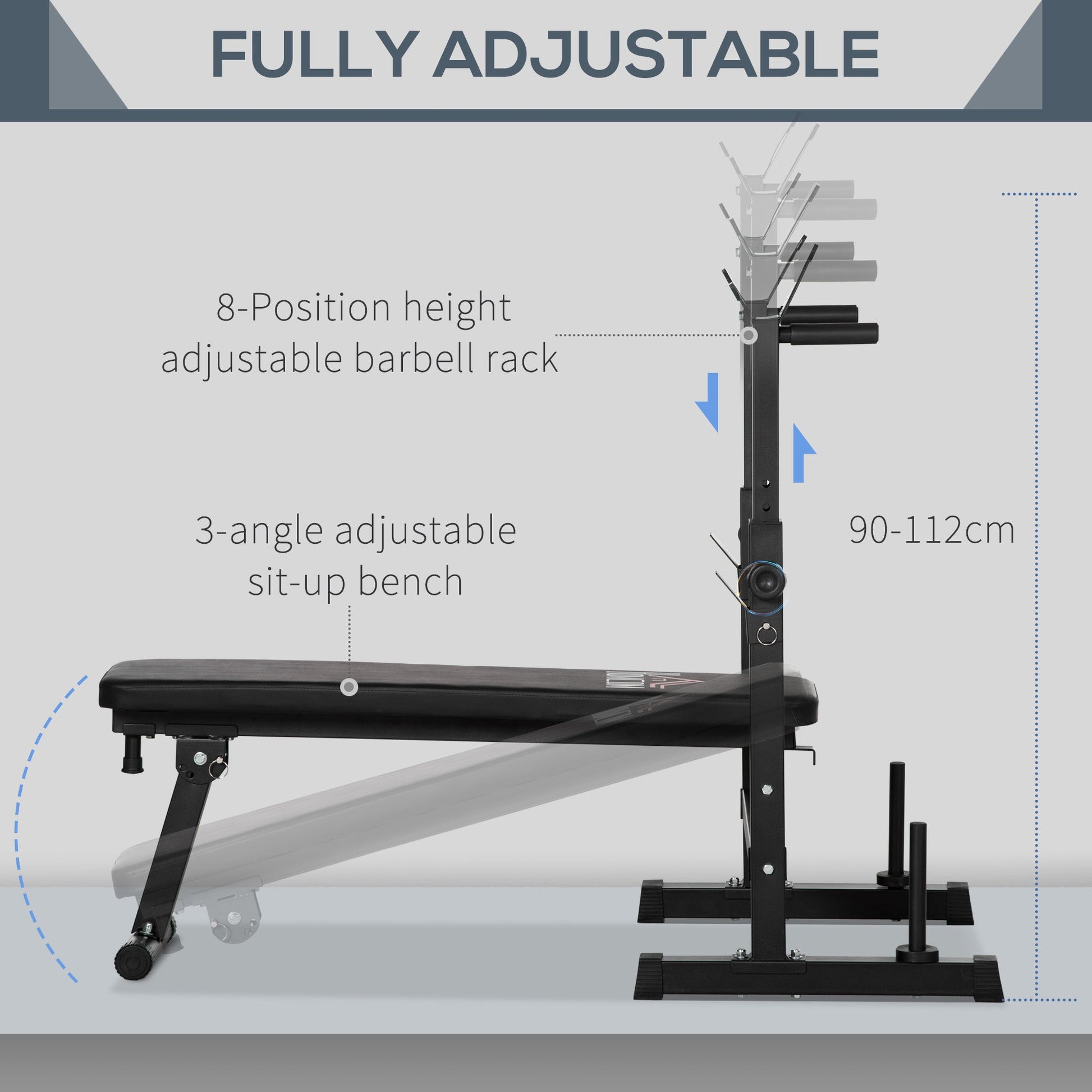 HOMCOM Adjustable Weight Bench, Foldable Bench, with Barbell Rack, Black