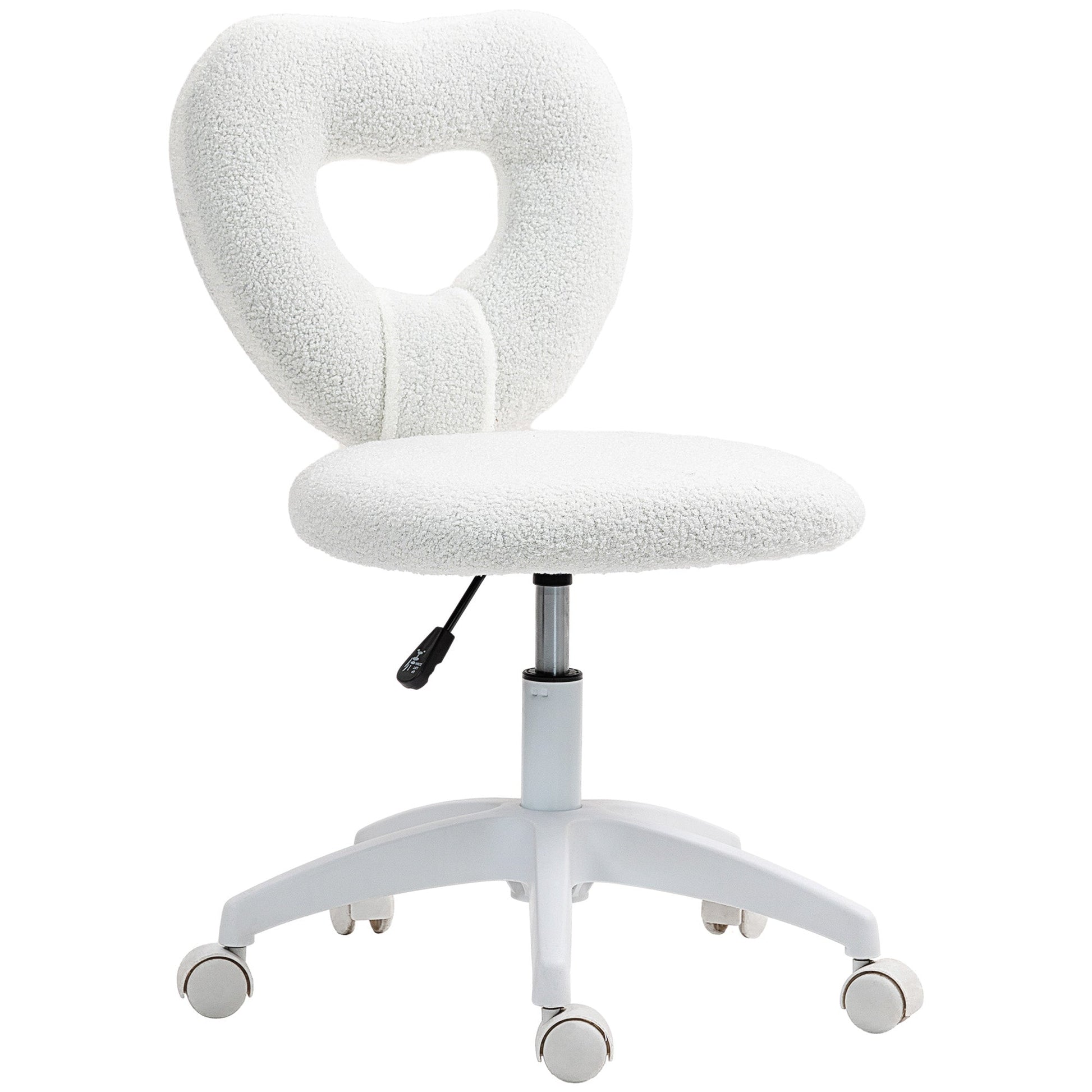 HOMCOM Armless Heart Computer Desk Chair, Teddy Fleece Swivel Office Chair, Makeup Vanity Chair with Height Adjustable, Wheels, for Home Study Bedroom, White