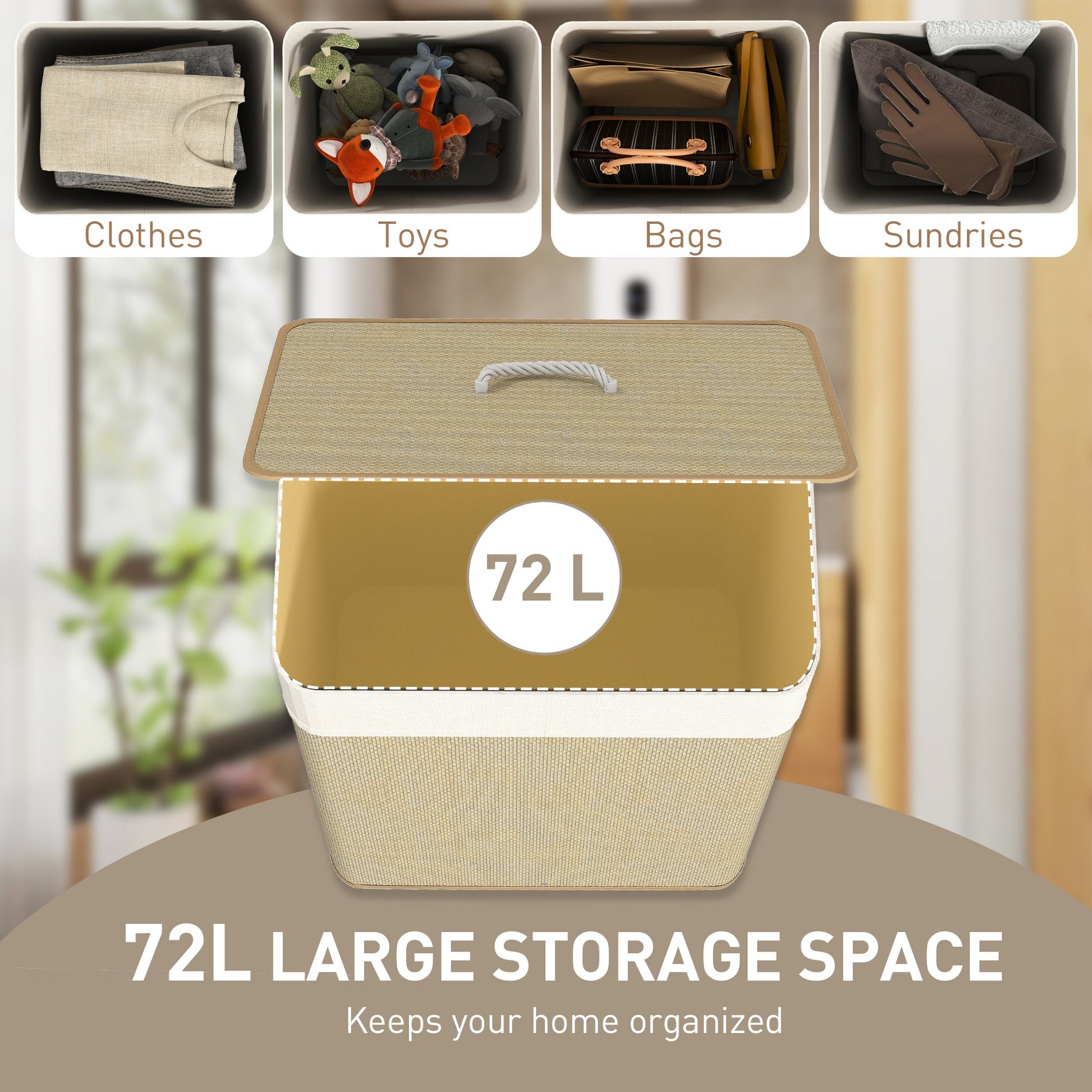 HOMCOM Bamboo Laundry Basket with Lid, 72L Laundry Hamper with Rope Handles, Washing Basket with Removable Washable Liner Bag for Bathroom, Bedroom, Nature Wood Finish