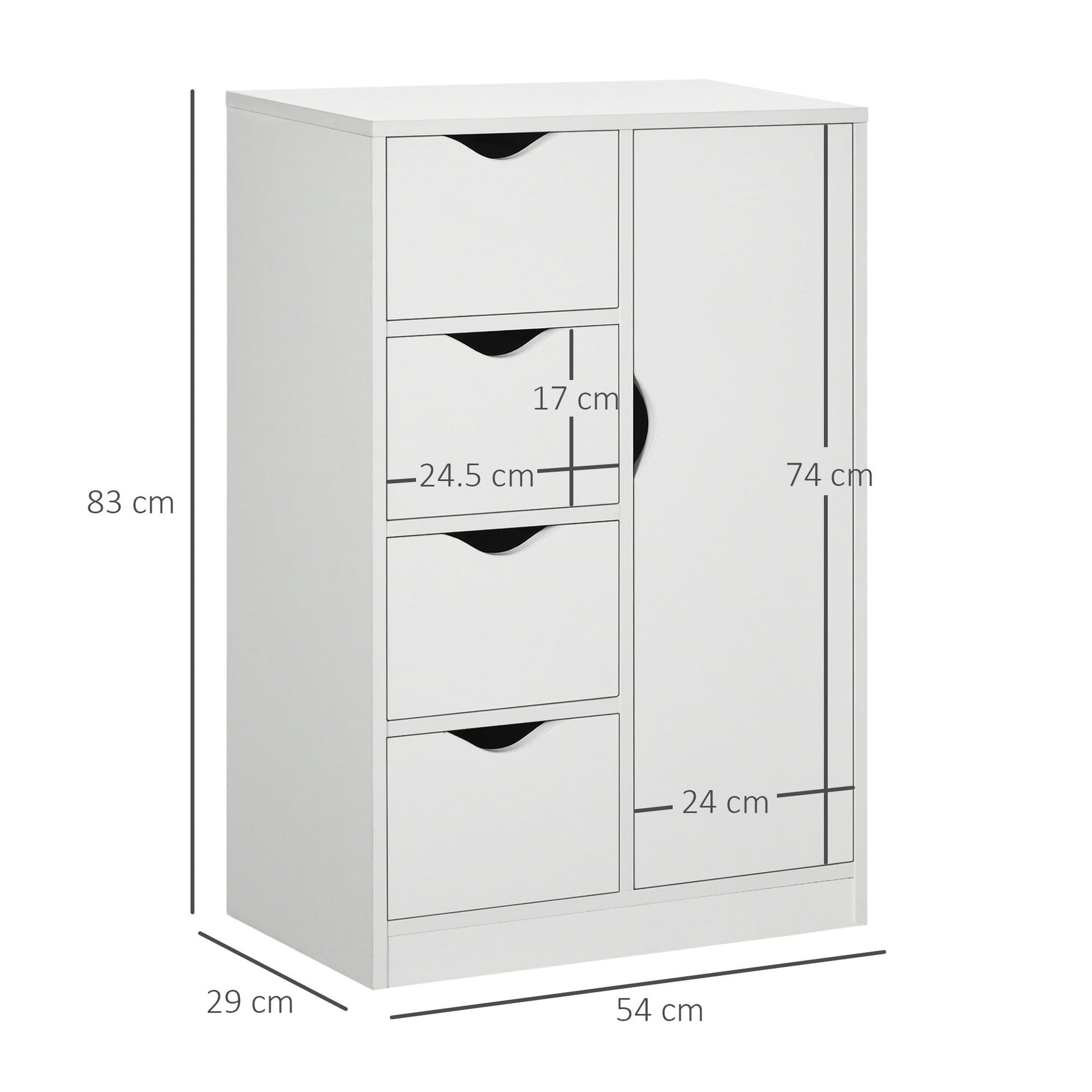HOMCOM Bathroom Cabinet, Freestanding Storage Cabinet with 4 Drawers, Door Cupboard for Living Room, Kitchen, Bedroom, White