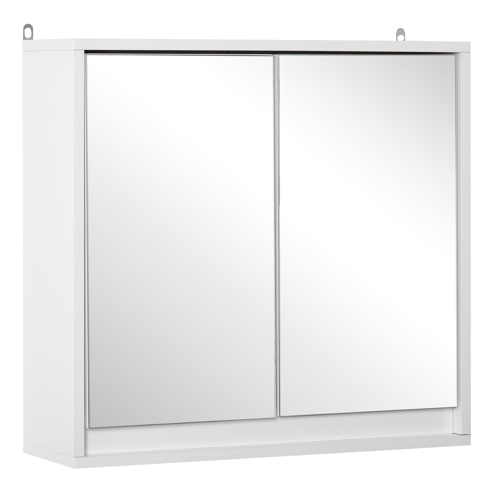HOMCOM Bathroom Mirror Cabinet Wall Mounted Storage Shelf Bathroom Cupboard Double Door, White