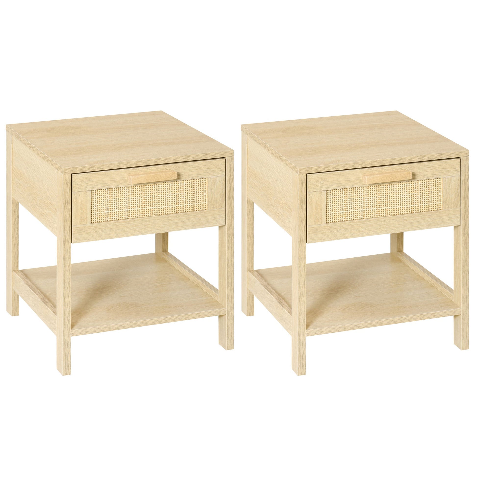طاولة بجانب السرير من HOMCOM، طاولة بجانب السرير مع درج من الخيزران ورف تخزين مفتوح، طاولة جانبية ريفية لغرفة النوم وغرفة المعيشة، مجموعة من قطعتين