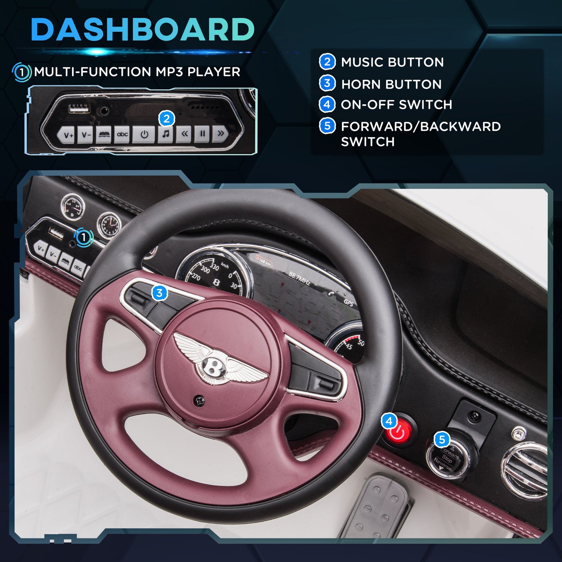 HOMCOM Bentley Mulsanne Licensed Kids Electric Ride-On Car, with Remote Control. LED lights, Music - White