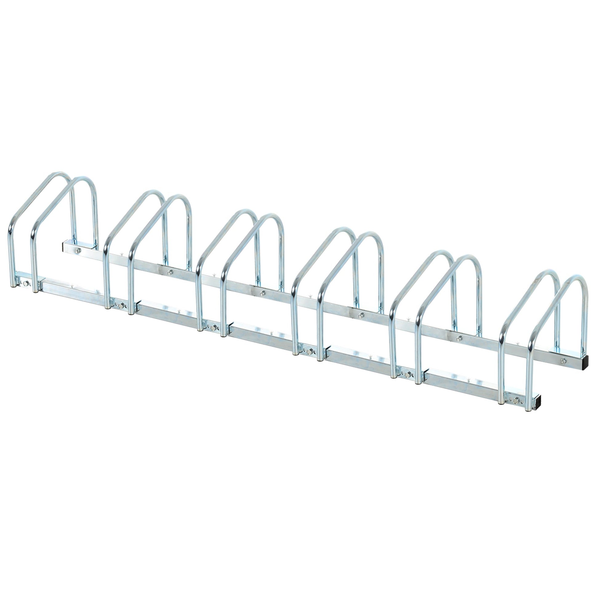 حامل دراجات من HOMCOM، حامل دراجات مثبت على الأرض أو الحائط، حامل قابل للقفل، 179 طول × 33 عرض × 27 ارتفاع (6 رفوف، فضي)