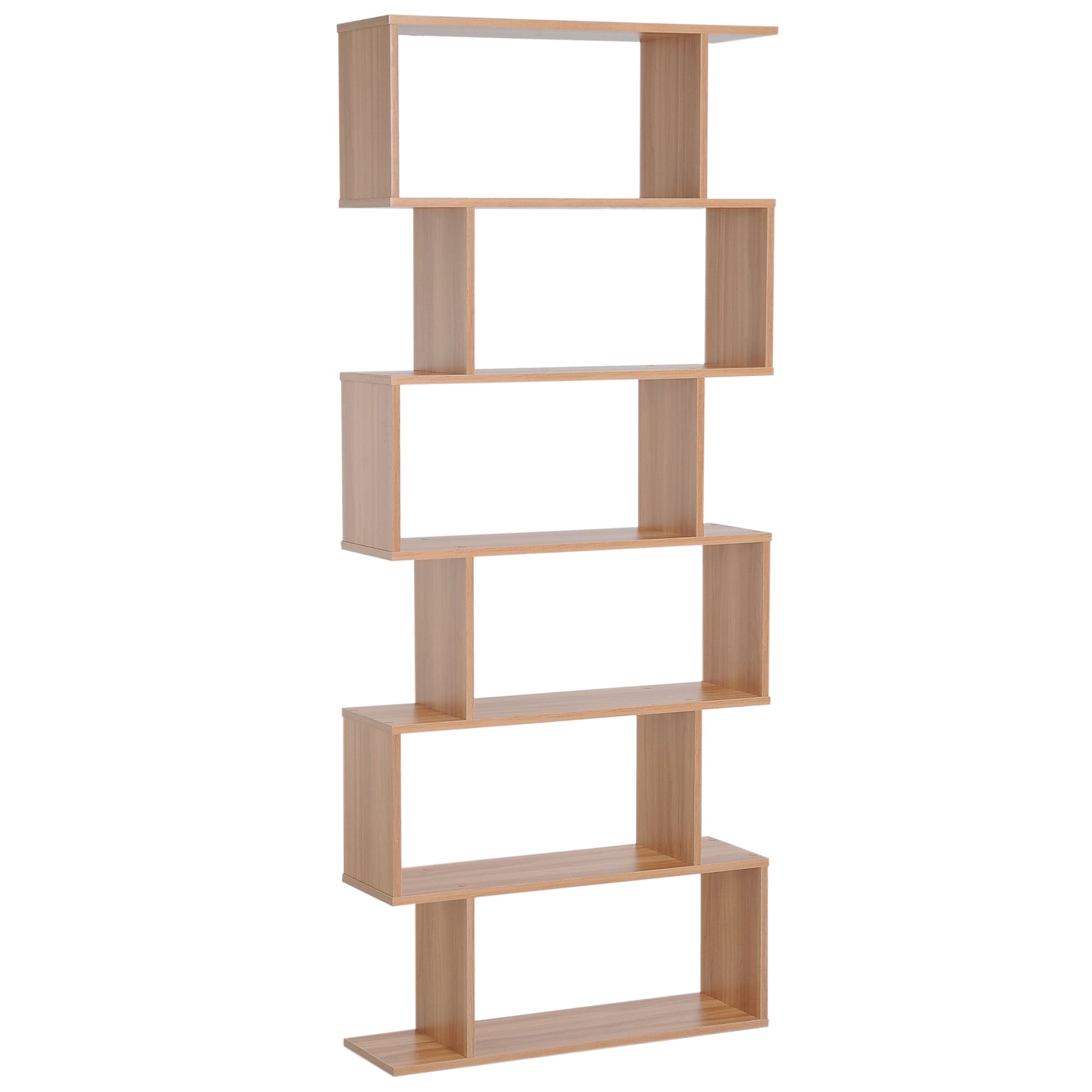 HOMCOM Bookcase, 6 Tier Shelf S Shaped Bookshelf, Storage Unit, Display Shelf for Living Room, Bedroom, Home Office, Plant, Maple