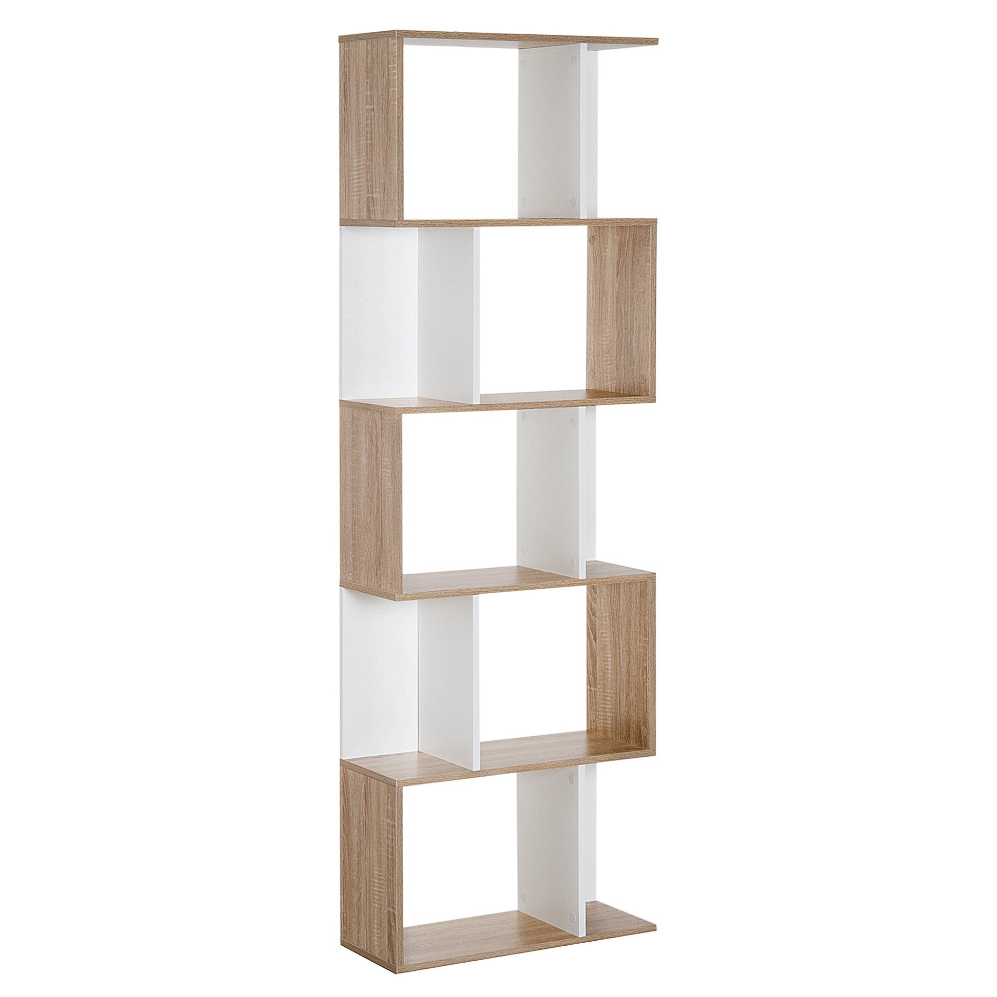 HOMCOM Bookcase, S-Shaped Wooden Bookshelf, 5/6 Tiers Freestanding Storage Shelf, Home Office Decorative Display Stand Rack, Oak and White, 24D x 60W x 184.5H