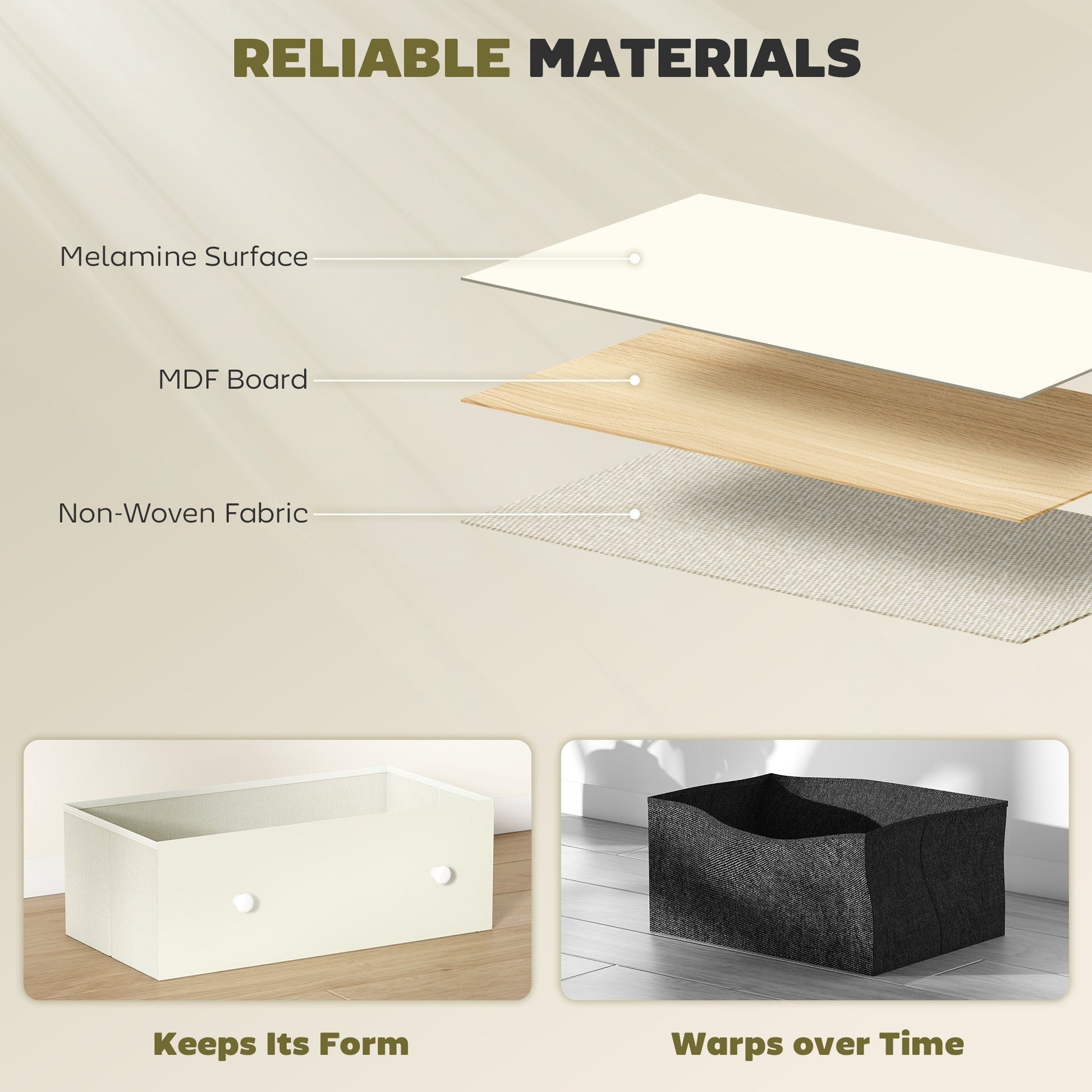 Bring style and order to your bedroom with this chest of drawers from HOMCOM. Featuring four foldable fabric drawers, it makes sorting clothes like T-shirts, jeans and socks simple. The two-tone design, white and grey wood-effect, brings a stylish look. The MDF and steel frame ensures stability, while anti-tip straps add safety. Transform your space into a serene haven with this HOMCOM dresser.