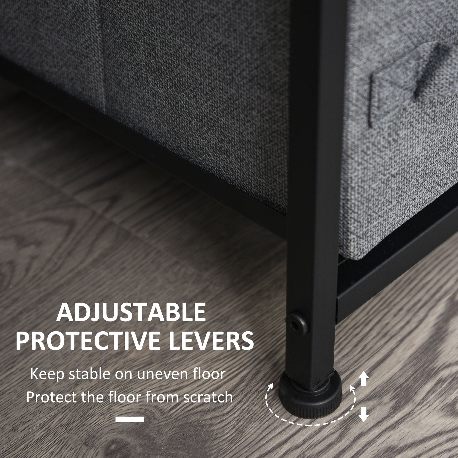 The HOMCOM bedroom chest of drawers is the great solution for keeping your bedroom organised. Built with a stable steel frame and engineered wood top, it provides reliable display space. With four small drawers and three large ones, it offers generous storage for clothes and other essentials. The adjustable feet ensure stability, making it suitable as a bedroom dresser, bedroom unit, or stylish fabric drawer for any modern space.