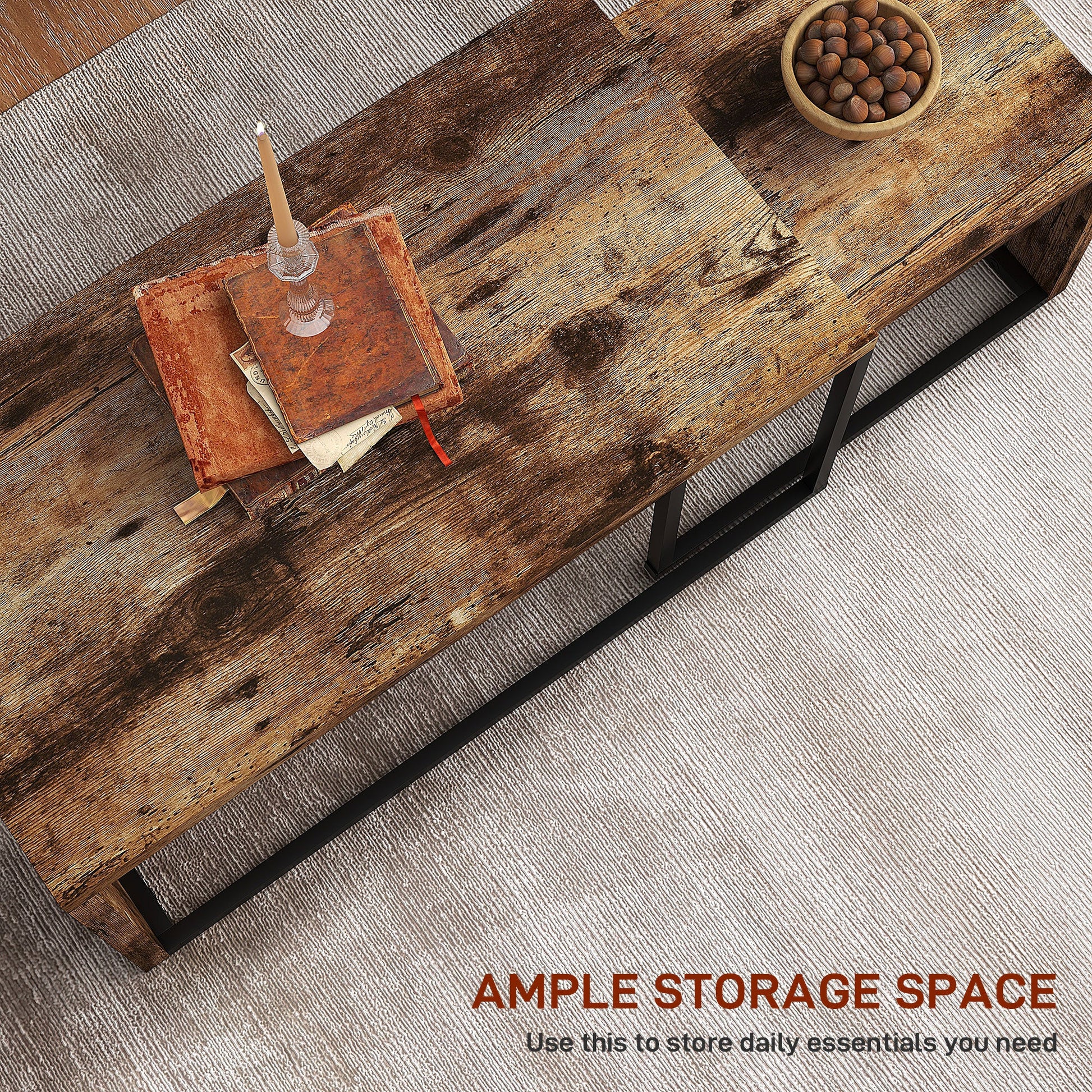 HOMCOM Coffee Tables Set of 2, Industrial Nest of Tables with Metal Frame for Living Room Bedroom, Rustic Brown