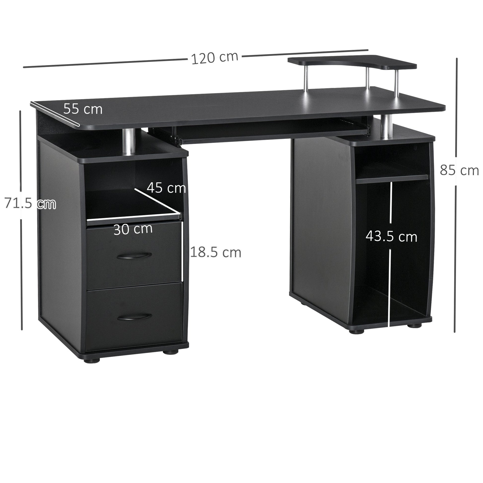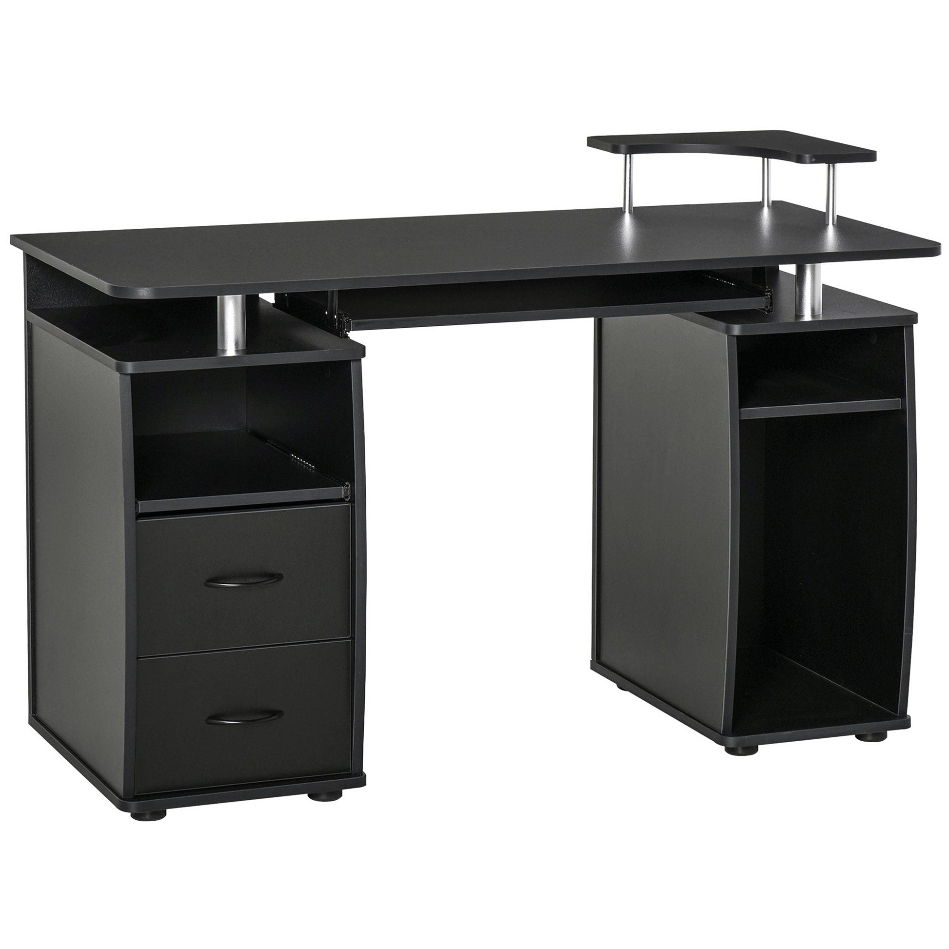 HOMCOM Computer Desk Office PC Table Workstation with Keyboard Tray, CPU Shelf, Drawers, Sliding Scanner Shelf, Black