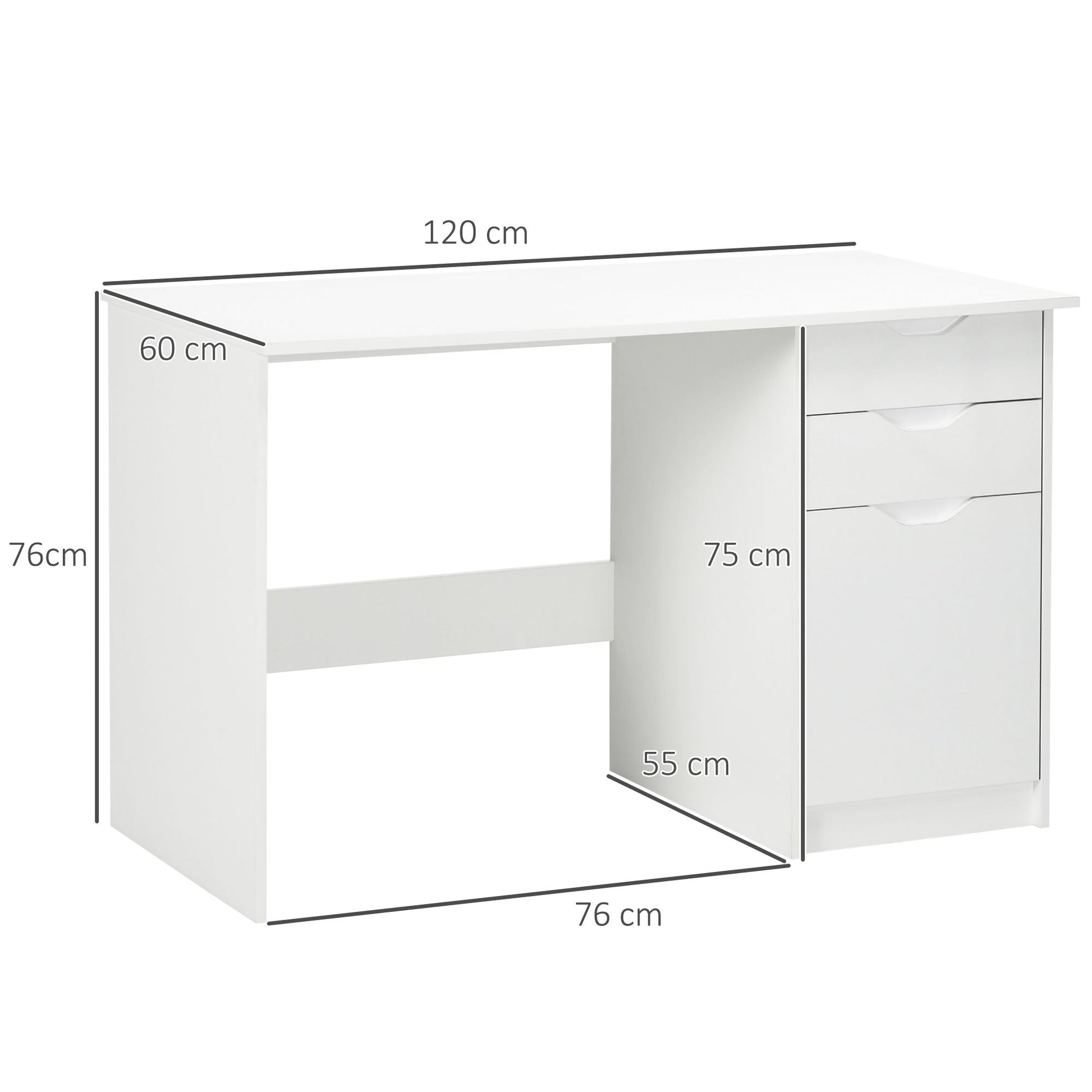 HOMCOM Computer Desk with Drawers, High Gloss Home Office Desk with Storage Cabinet, Study Workstation, 120 x 60cm, White