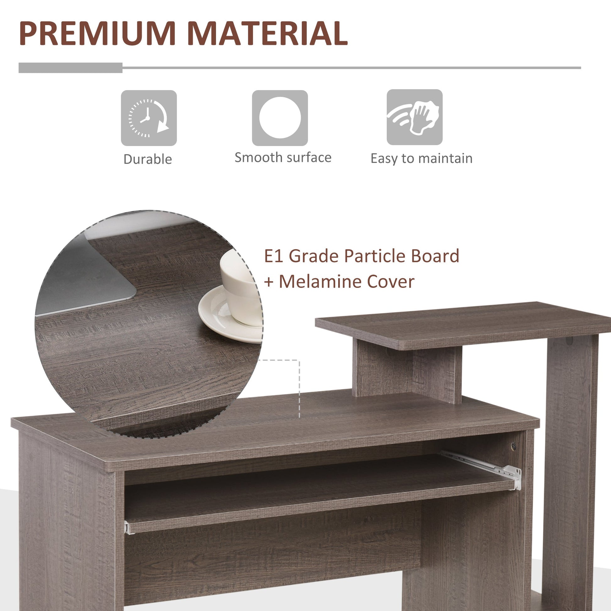 مكتب كمبيوتر من HOMCOM مع درج تخزين لوحة مفاتيح منزلقة ورفوف ومحطة عمل منزلية باللون الرمادي