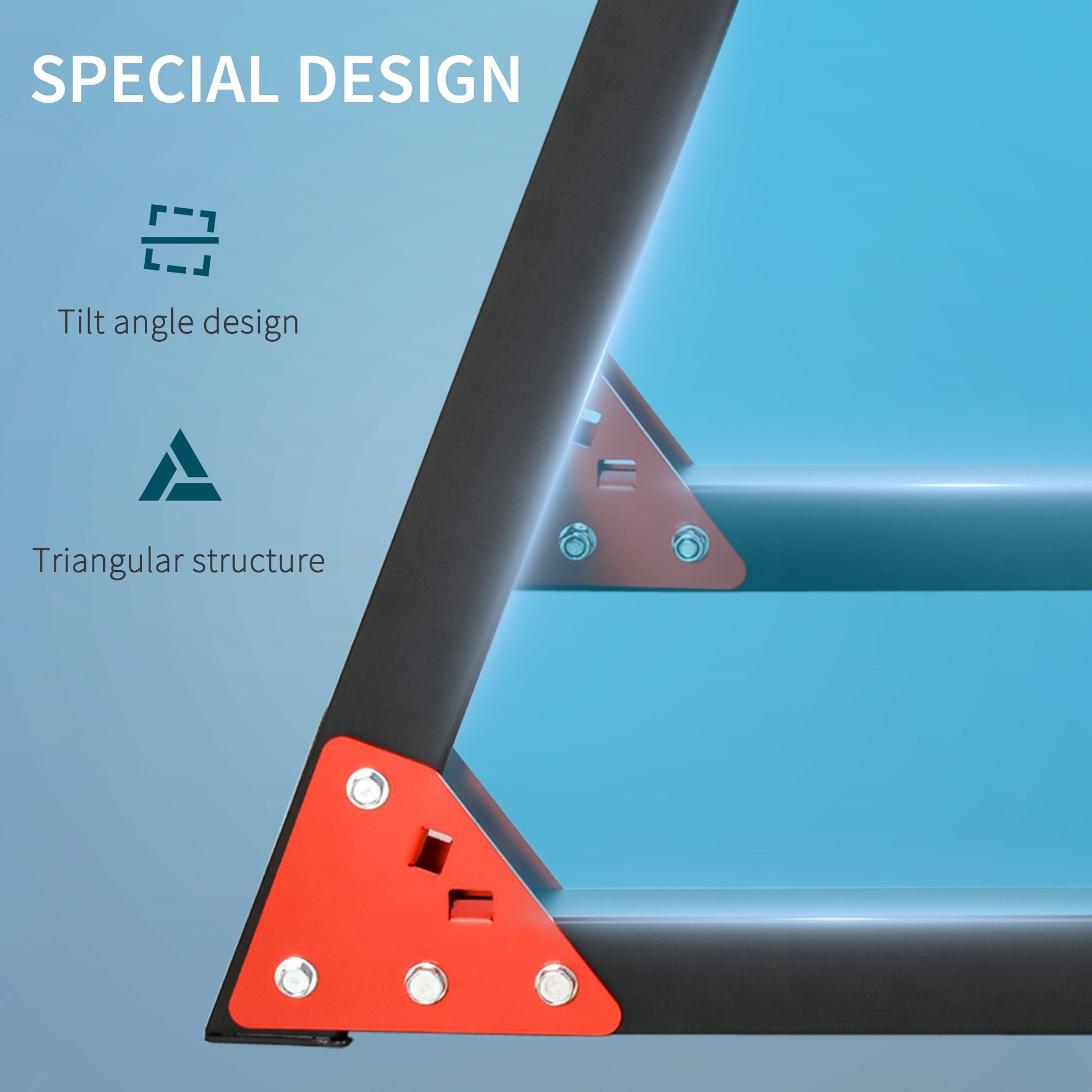 Train your upper body with this dip station from HOMCOM. Exercises include dips, push ups, leg swings, crunches and more – great for targeting triceps, biceps, core, back and chest. Its steel frame is strong and durable, whilst the rubber footpads stop the appliance from sliding, ensuring you're safe and secure when exercising. An effective way to build strength and tone your body, which can be done from the comfort of your home.