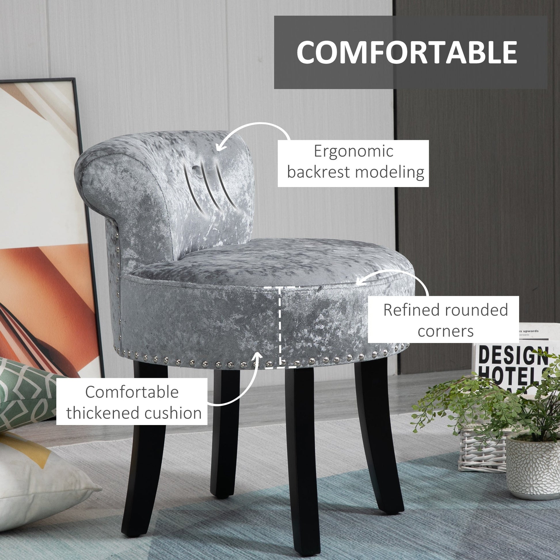HOMCOM Dressing Table Stool with Rubber Wood Legs, Ice Velvet Vanity Stool for Living Room Bedroom, Grey