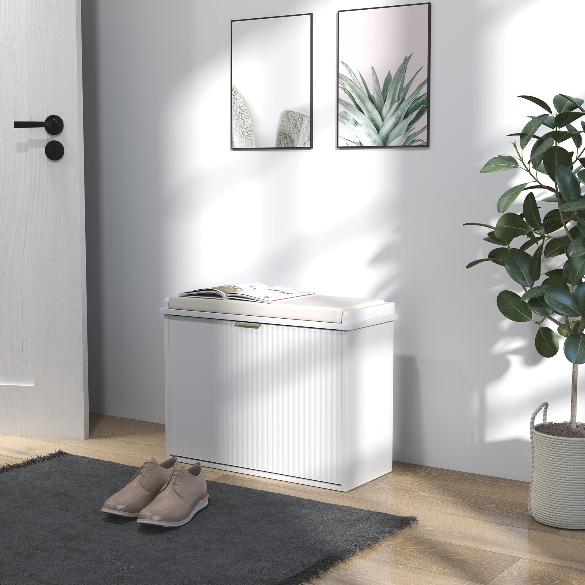 HOMCOM Elegant Six Shoe Bench, with Top Seat - White