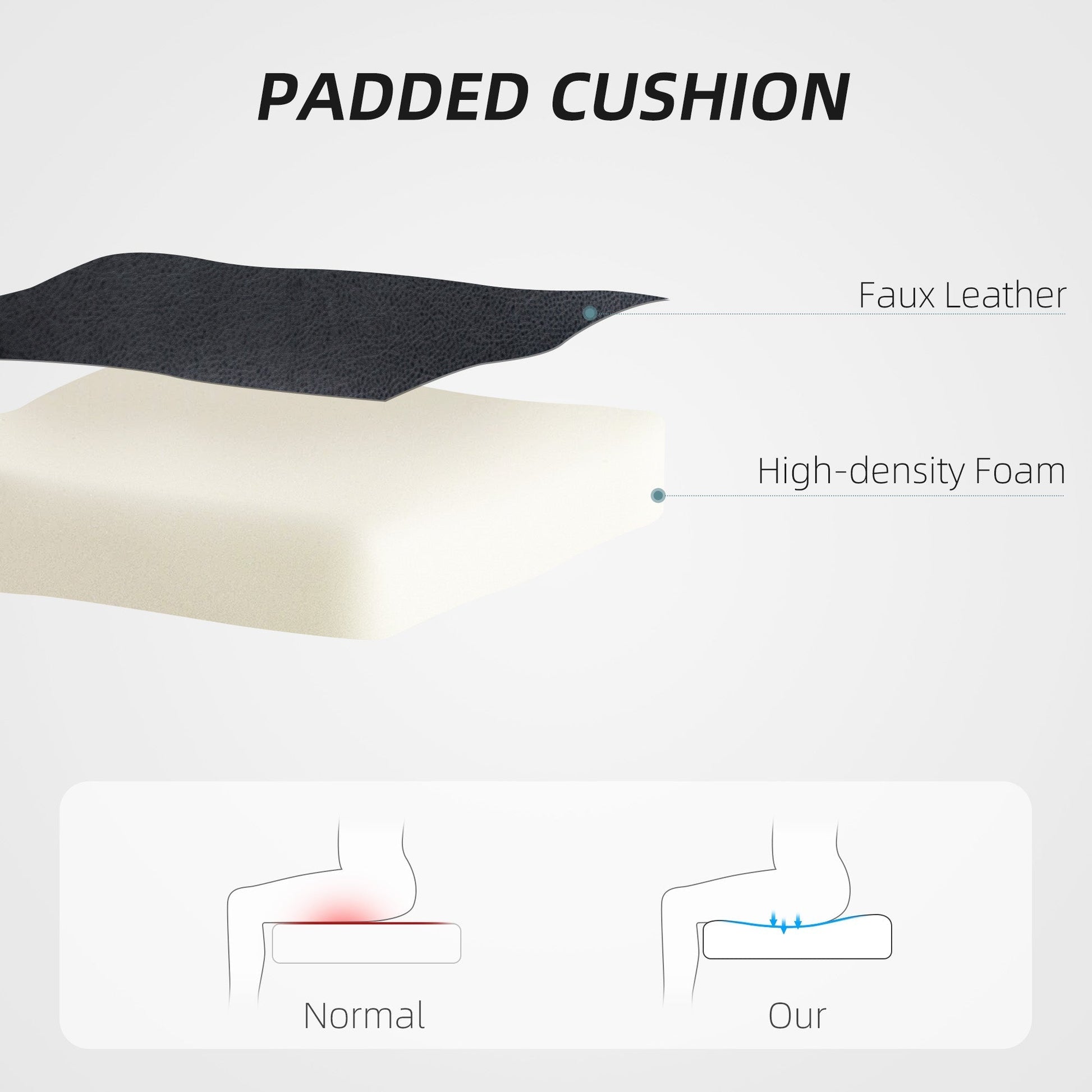 - Material: Faux Leather, Foam, Metal