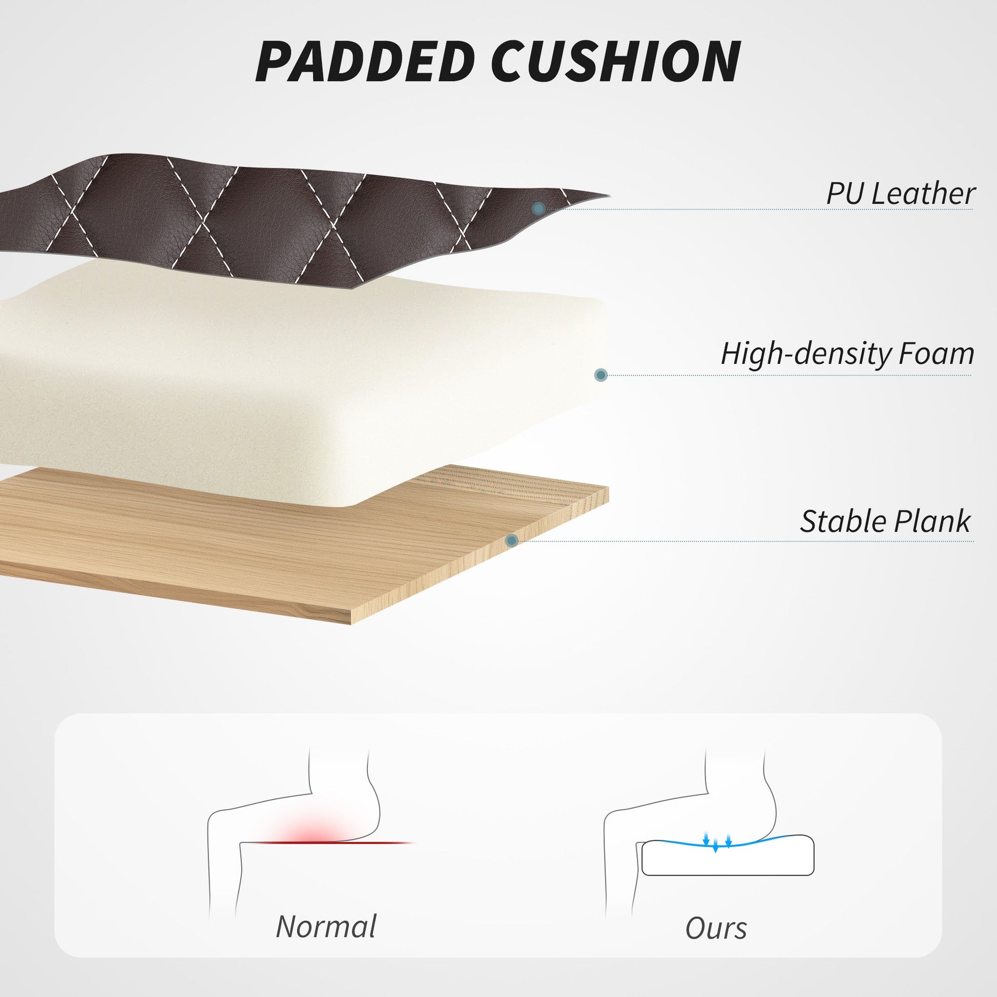 - High-density sponge filling for comfort, with sleek faux leather upholstery