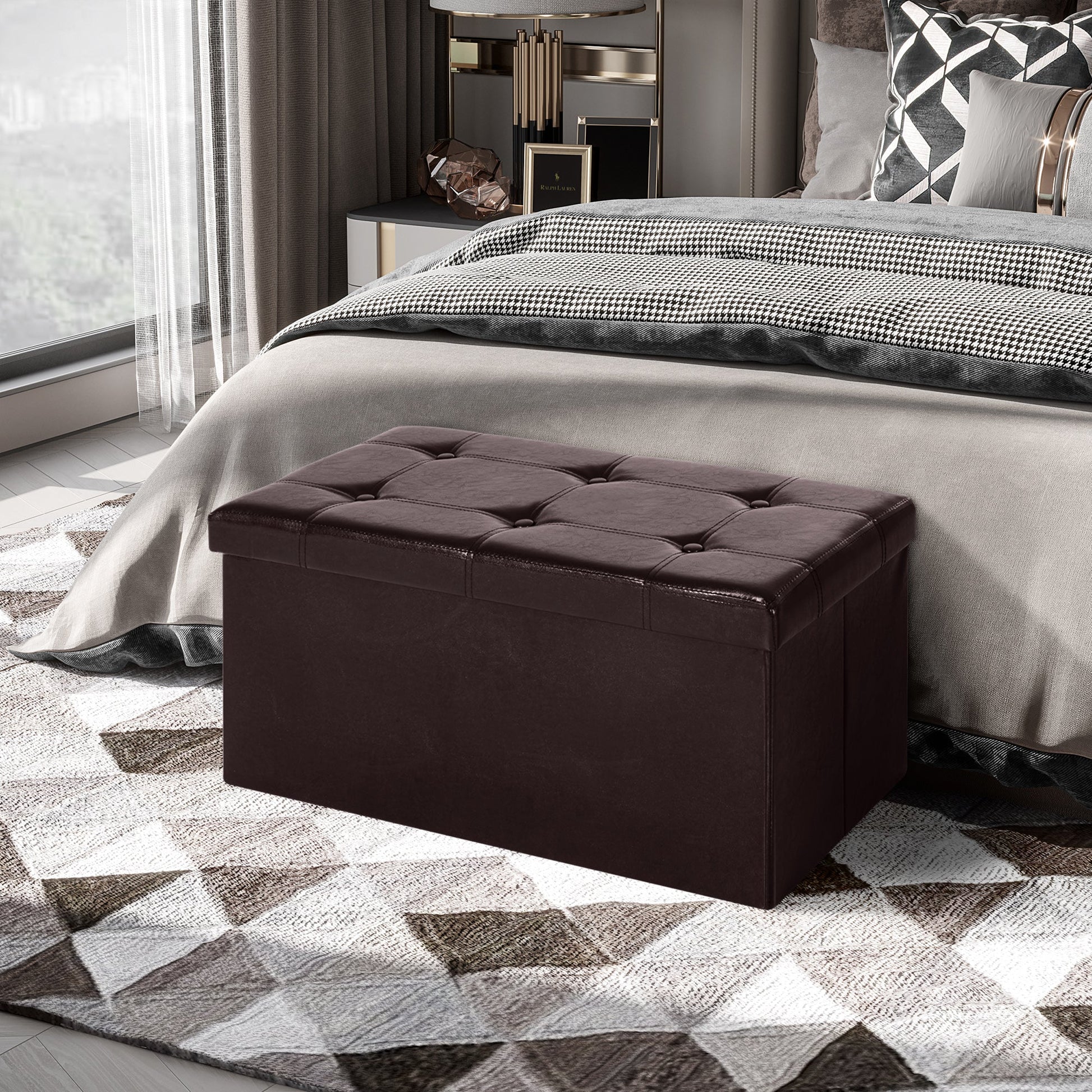 مقعد عثماني قابل للطي من الجلد الصناعي مع مسند قدم مستطيل من مادة البولي يوريثان من HOMCOM (بني)
