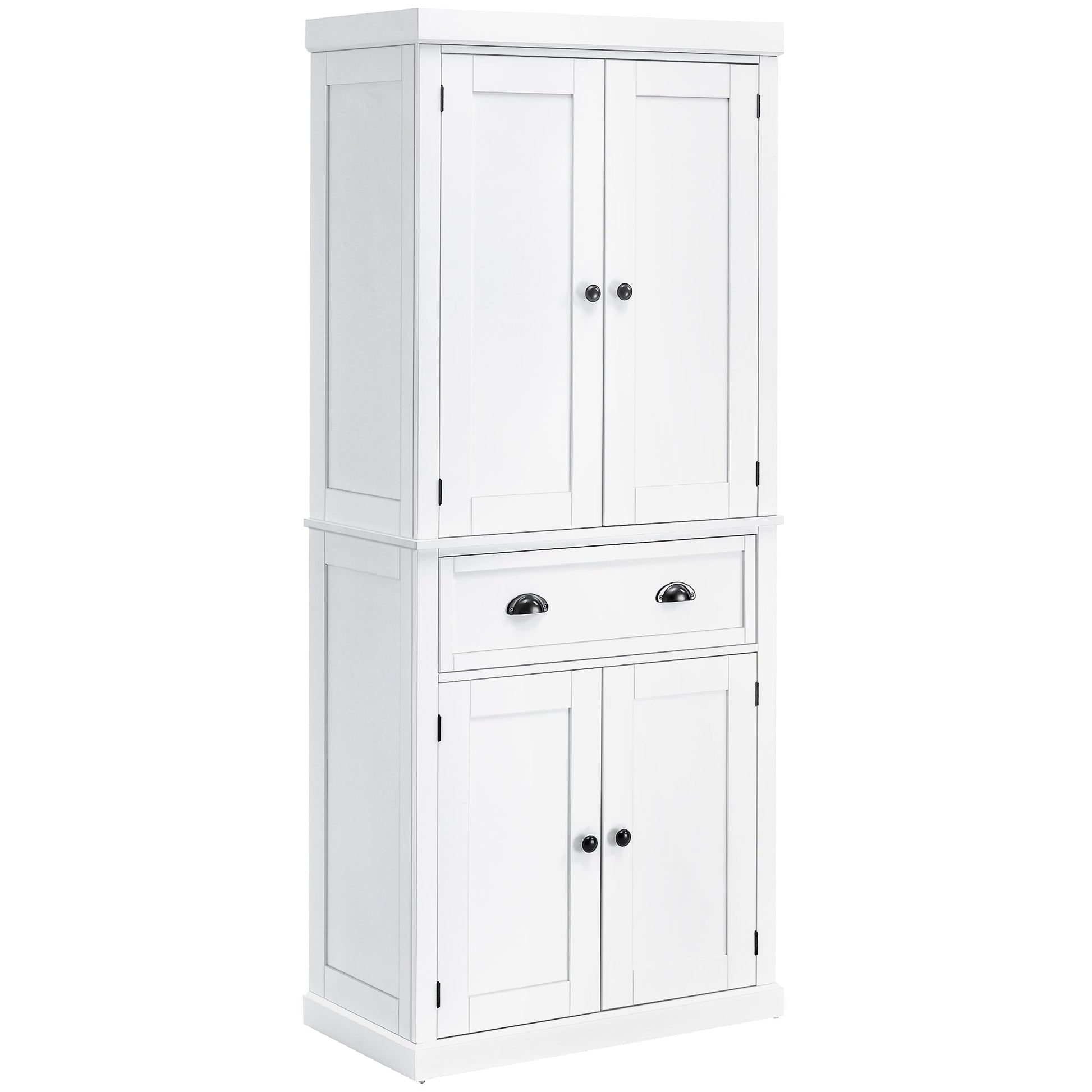 HOMCOM Freestanding Kitchen Cupboard, 184cm Tall Storage Cabinet with Doors and Shelves, Traditional Colonial 4-Door Kitchen Pantry Cupboard with Drawer, White
