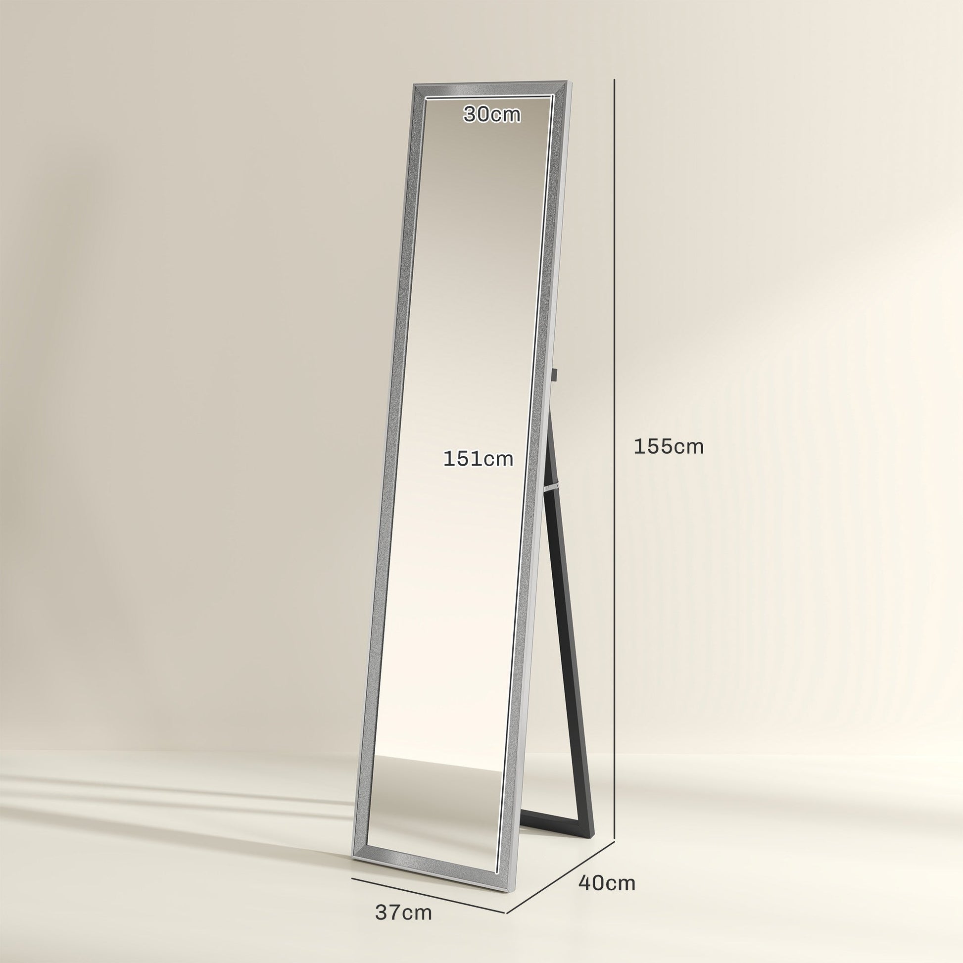 مرآة HOMCOM كاملة الطول بإطار لامع - فضي