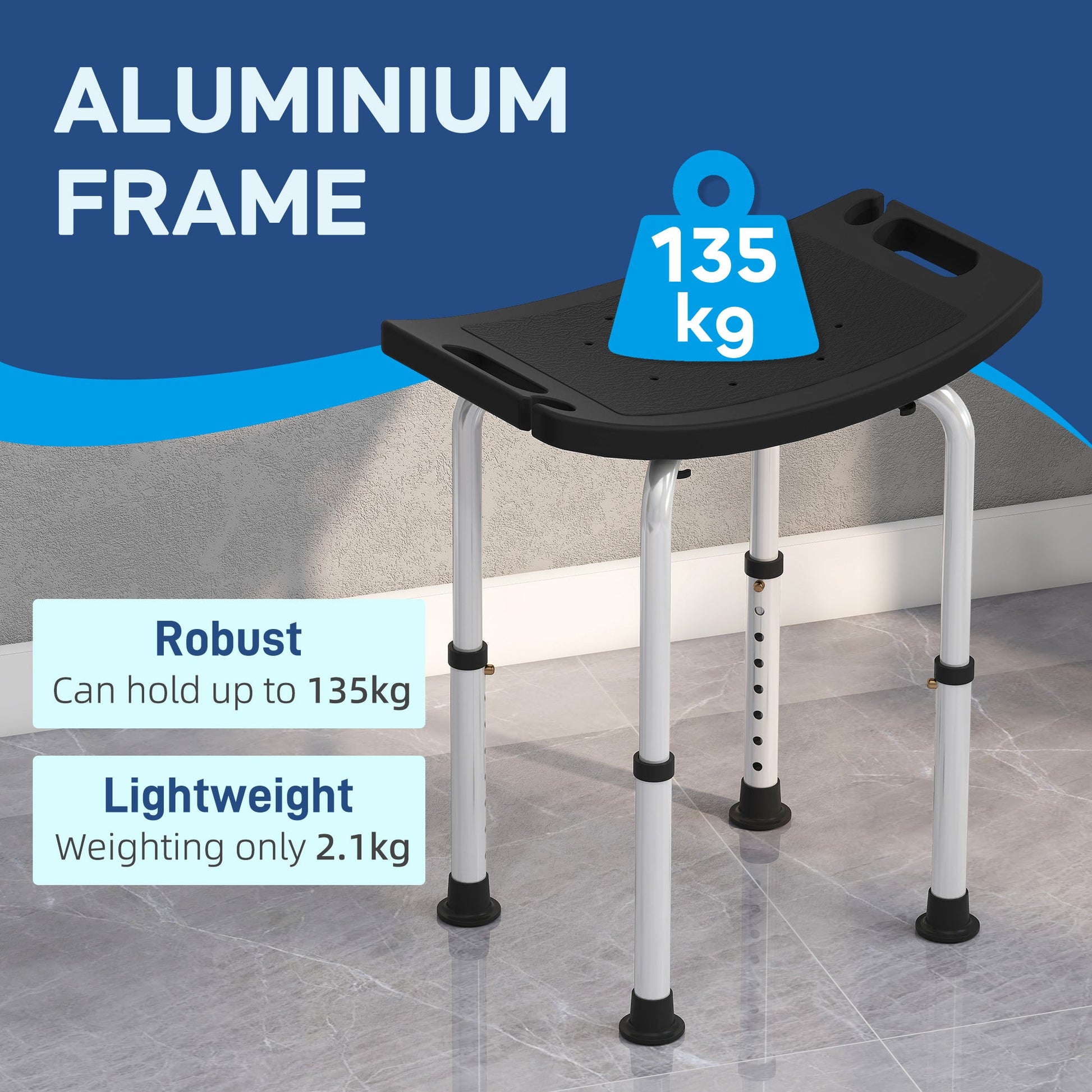 HOMCOM Height Adjustable Bath Stool, Aluminium Shower Stool with Non-Slip Pads for Elderly, Disabled, Seniors, Pregnant, Black