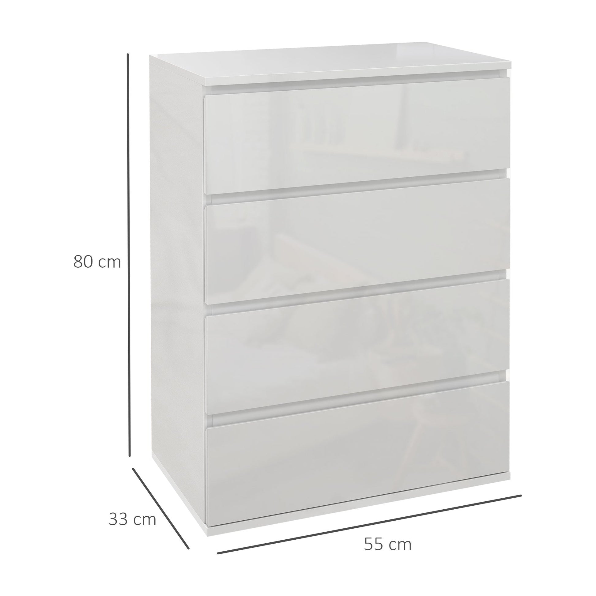 HOMCOM High Gloss Chest of Drawers, 4-Drawer Storage Cabinets, Modern Dresser for Bedroom, White