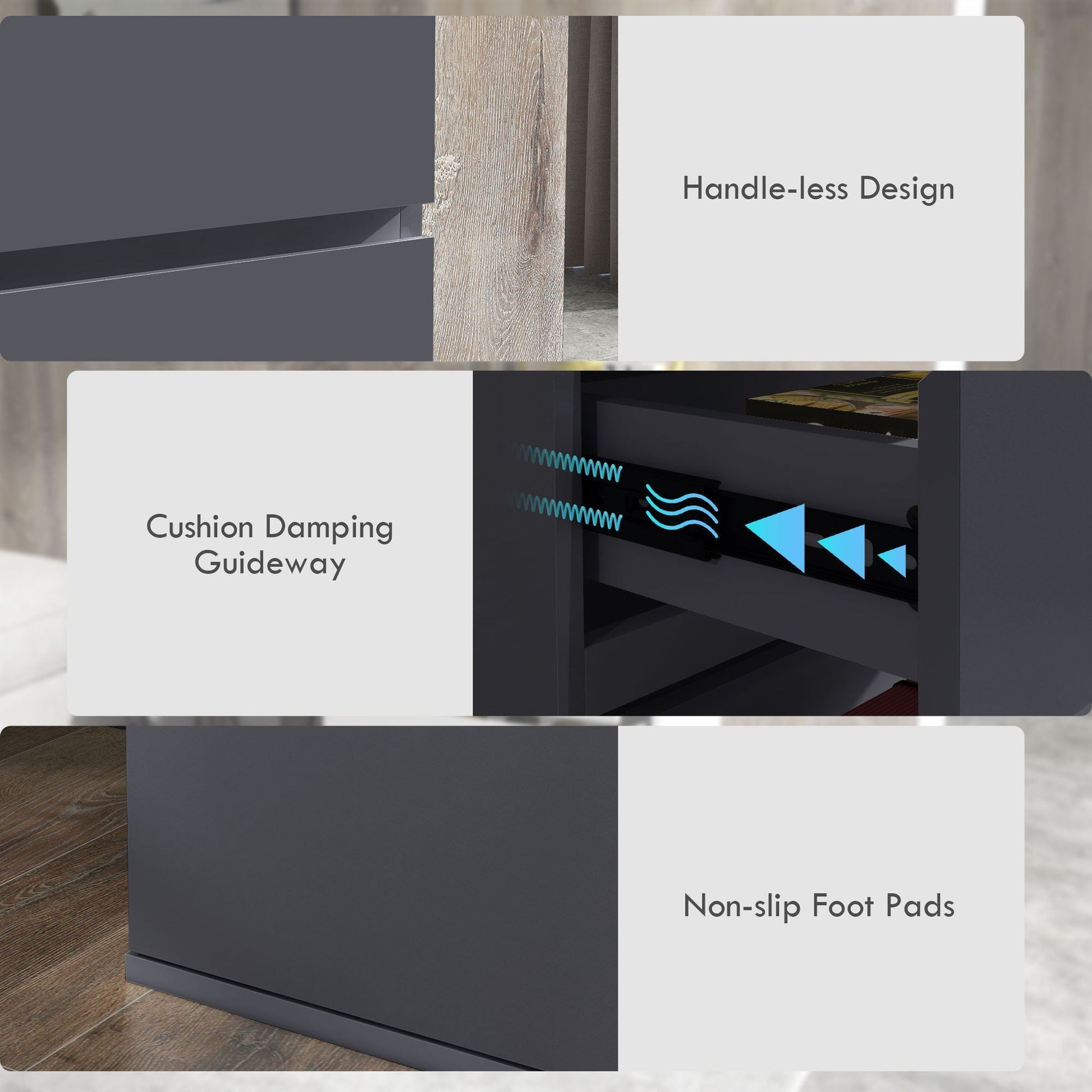 Elevate your home's aesthetic with the HOMCOM chest of drawers, a perfect blend of modern simplicity and functionality. Designed for families who value both style and practicality, this piece offers five spacious drawers to keep your clothing neatly organized. Its high gloss finish adds a touch of elegance, The handle-less, push-click design ensures a sleek appearance and smooth operation, making it an ideal choice for those seeking a contemporary and clutter-free living space.