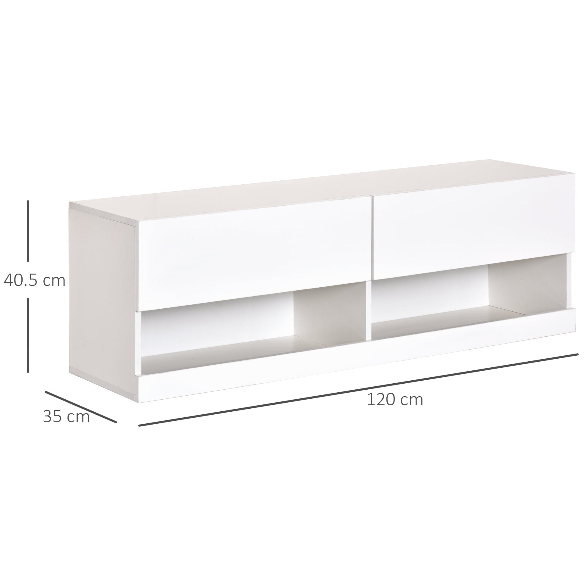 This wall-mounted TV unit is stylish, simple, and sturdy, with clean lines and glossy white colour that complete the look and decorate any home style. 24 flashing modes and 16 light colours add more exciting elements to your life. The wall-mounted design saves your valuable floor space, suitable for TVs within 42 inches. Two Compartments and cable holes make your home look cleaner. This entertainment unit is totally a perfect gathering piece and anchor for your living space!