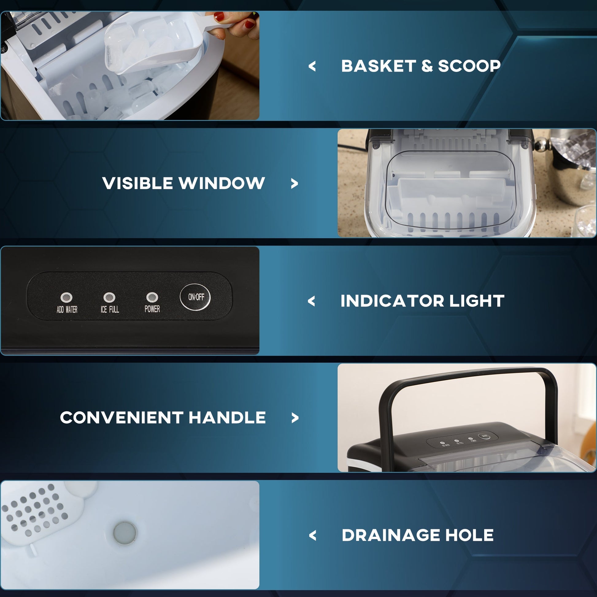 HOMCOM Ice Maker Machine Counter Top, 12Kg in 24 Hrs, 9 Cubes Ready in 6-12Mins, Portable Ice Cube Maker with Ice Scoop and Basket, Black