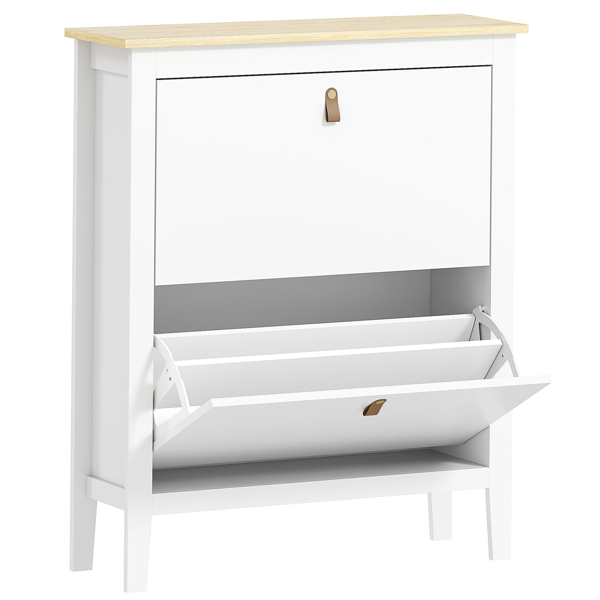 HOMCOM Modern Two-Drawer Shoe Cabinet - White
