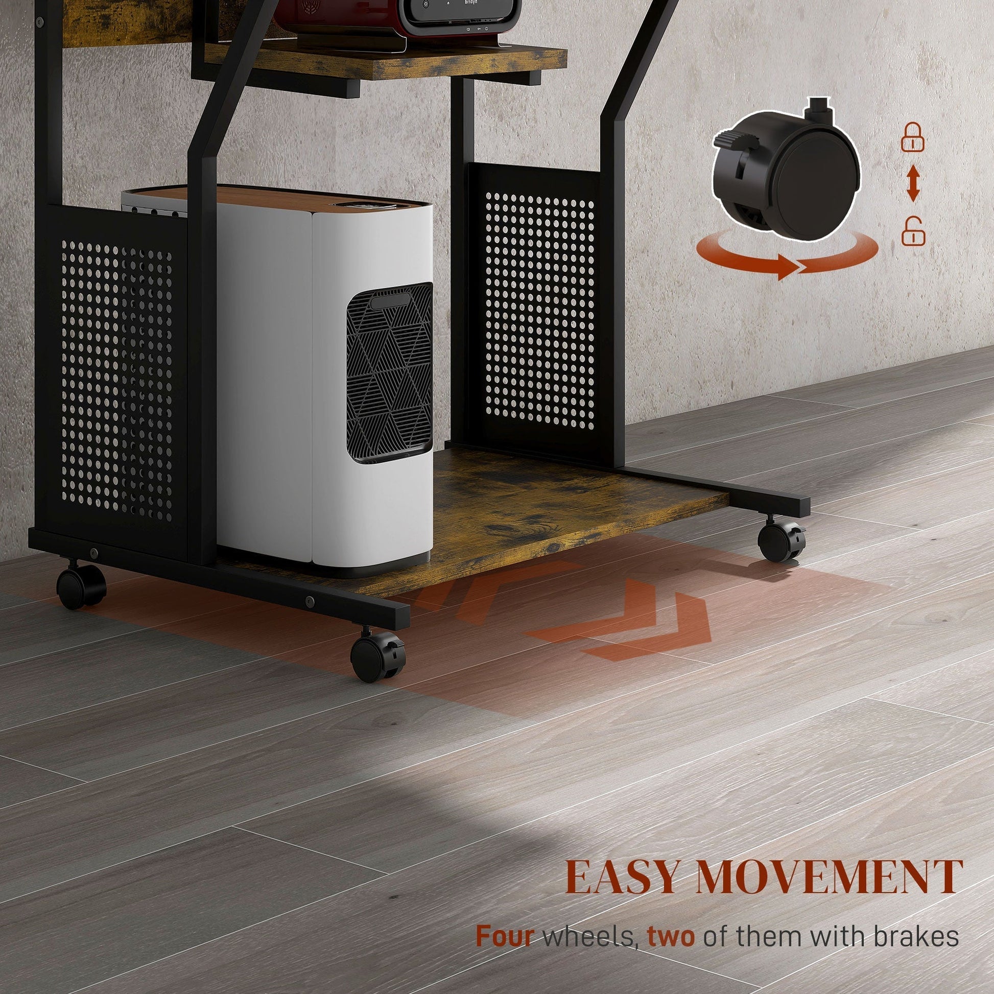 - Four wheels with two brakes to move around easily and lock in place