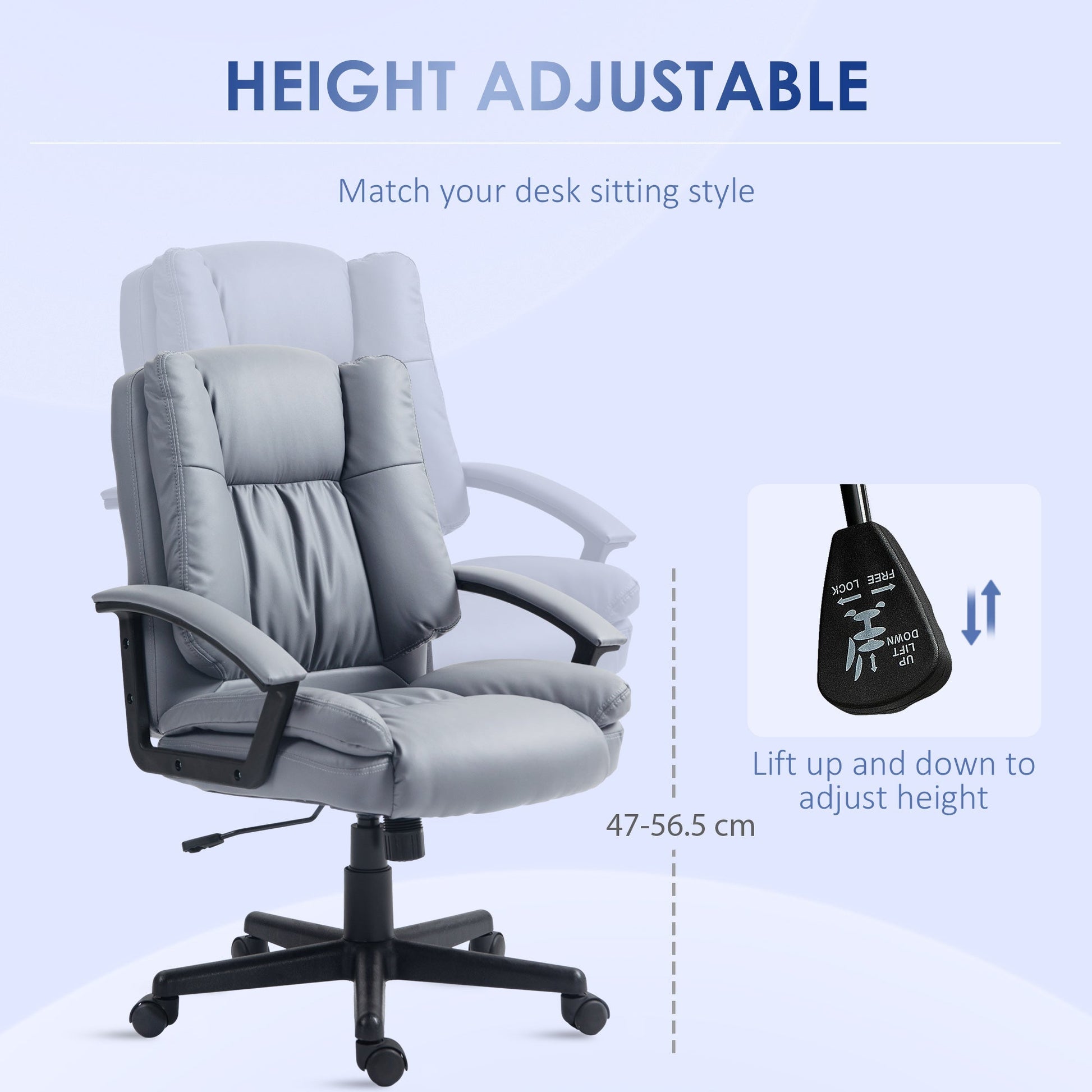 Make your home office a productivity and comfort zone with the HOMCOM office chair. Stylish and supportive, this chair with a high back and fixed armrests ensures your posture is perfectly aligned during long work hours. The adjustable height and plush PU leather seat, filled with thick sponge, offer unparalleled comfort. Effortlessly glide across your workspace with its 360 swivel base and five smooth-rolling wheels. Elevate your home office experience with this essential piece of furniture.