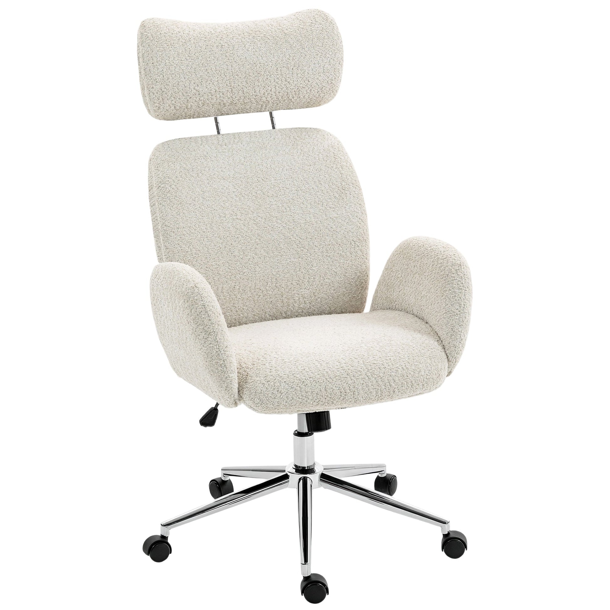 HOMCOM Office Chair with Adjustable Headrest, Spring Pack, Curved Line, Boucle Fabric - Pale Grey