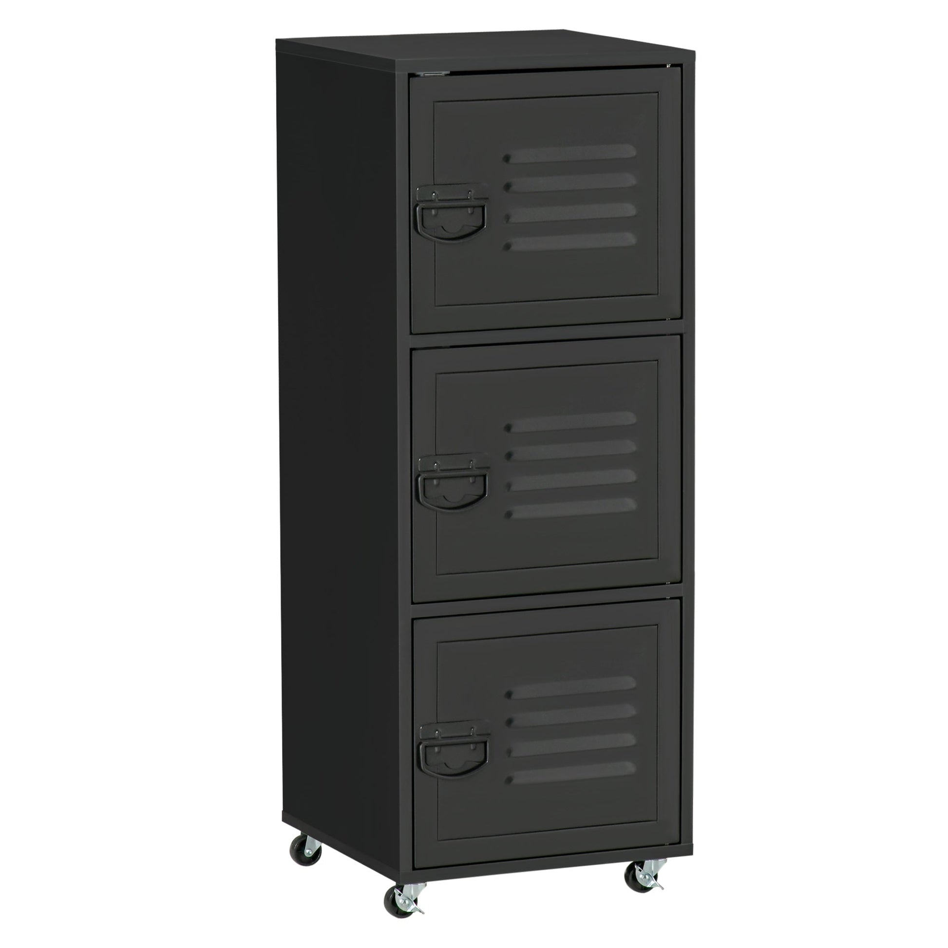 HOMCOM Rolling Storage Cabinet 3-Tier Mobile File Cabinet with Wheels & Metal Doors for Home Office, Living Room, Black