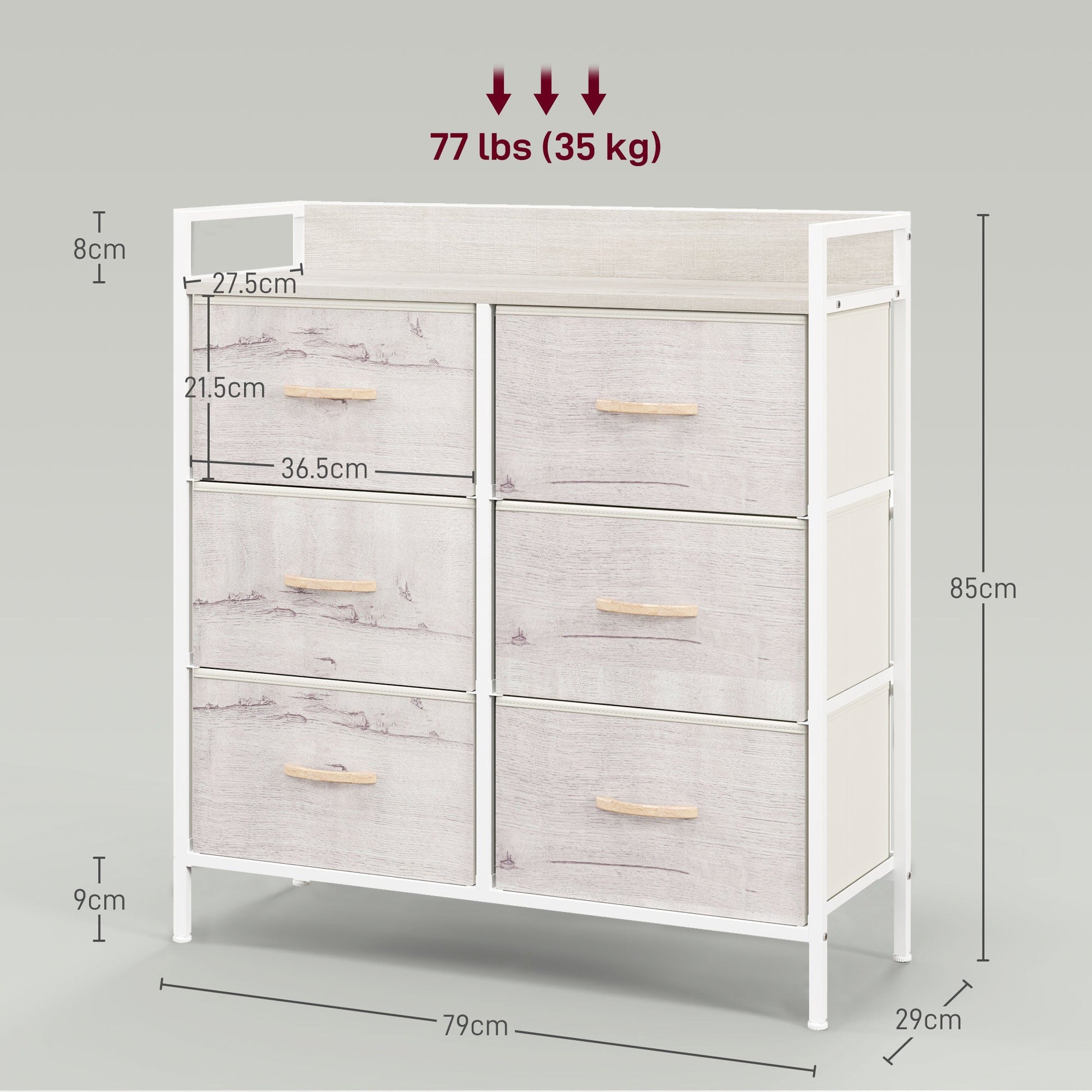 HOMCOM Rustic Chest of Six Fabric Drawers - Natural