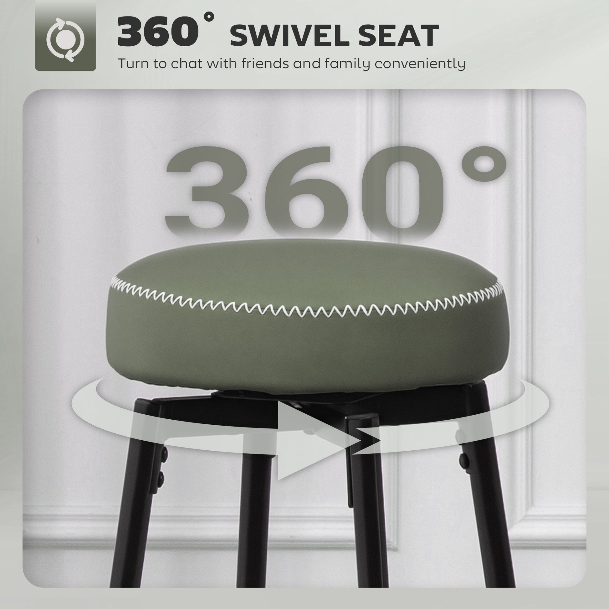 Style, with subtle contrast - look to this set of two HOMCOM bar stools. With faux leather upholstery for a sleek look - the white threads on the edges brings a touch of difference. The 8 cm thick foam cushion keeps you comfortable - ideal for extended times dining and more throughout the home. The powder coated metal frames mean strong, supportive cores - finished with adjustable feet for balance.