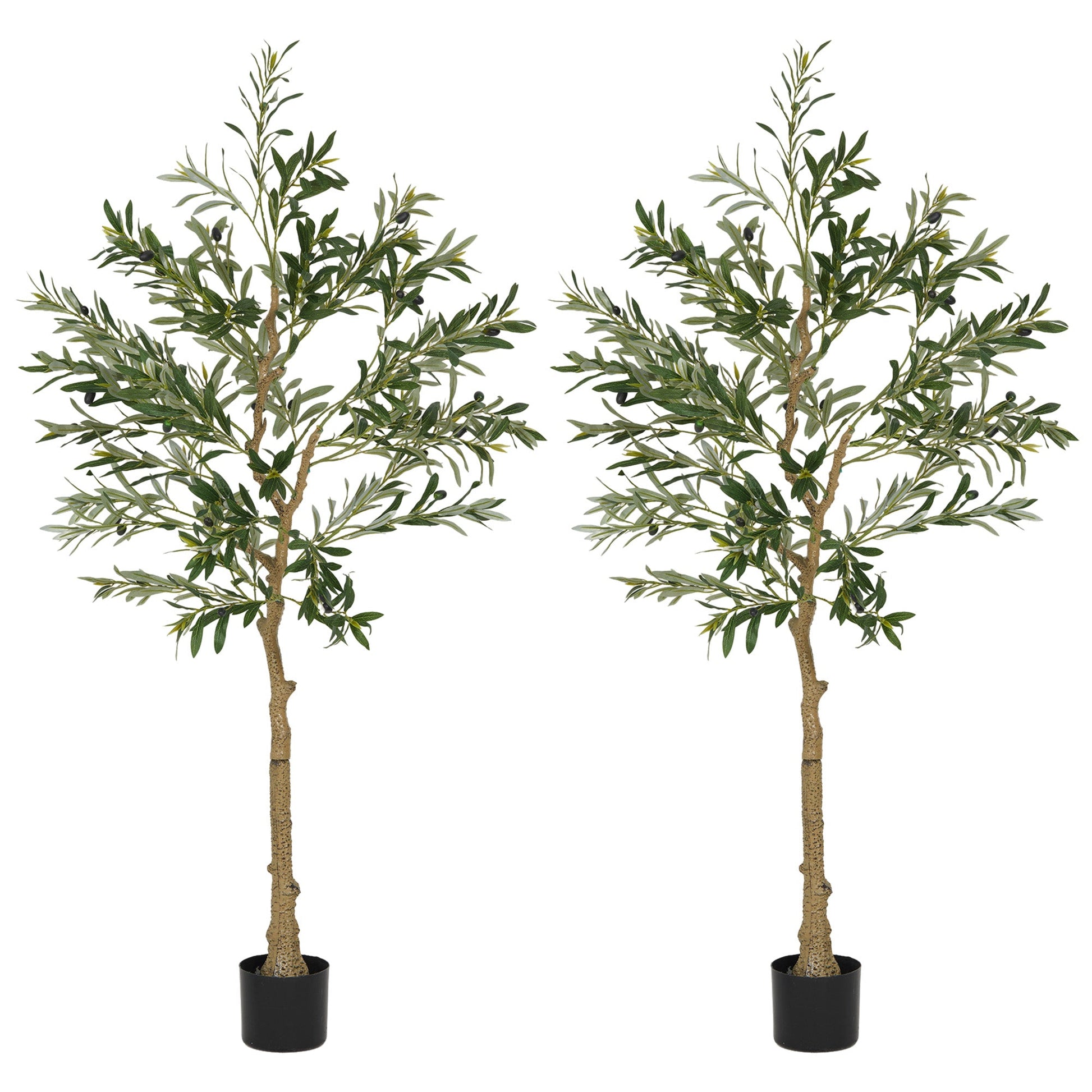 HOMCOM Set of Two Silk Leaf Artificial Olive Trees